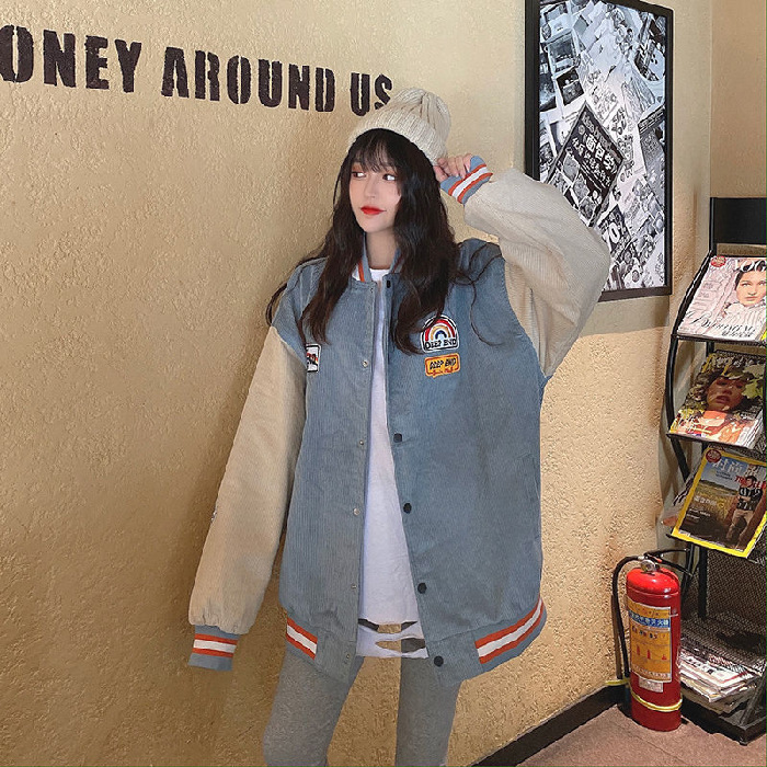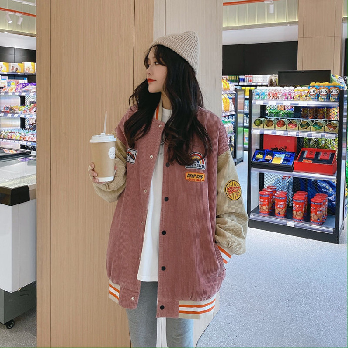 Главная страница > Женская вельветовая куртка через границу, весна-осень 2025, новая корейская версия, ретро-куртка Harajuku BF, японская бейсбольная куртка для женщин, модная