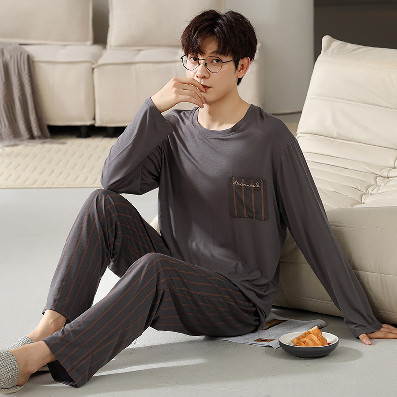 Главная страница > 5050 модальные пижамы, мужские осенние брюки с длинными рукавами, пуловер, крутая молодежная домашняя одежда, свободный костюм большого размера