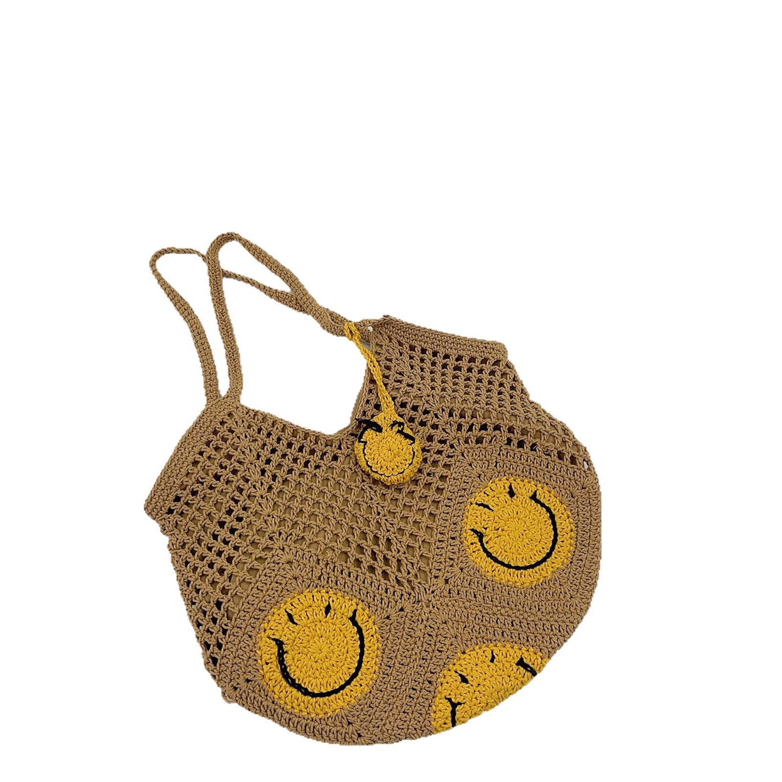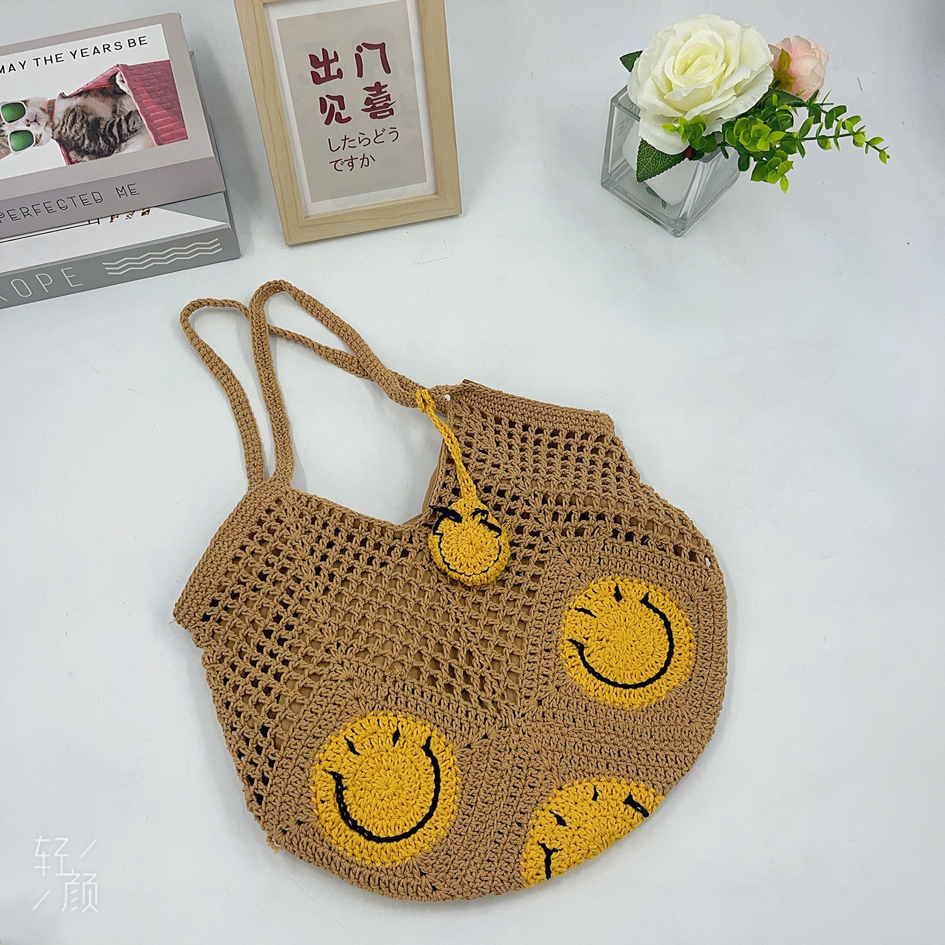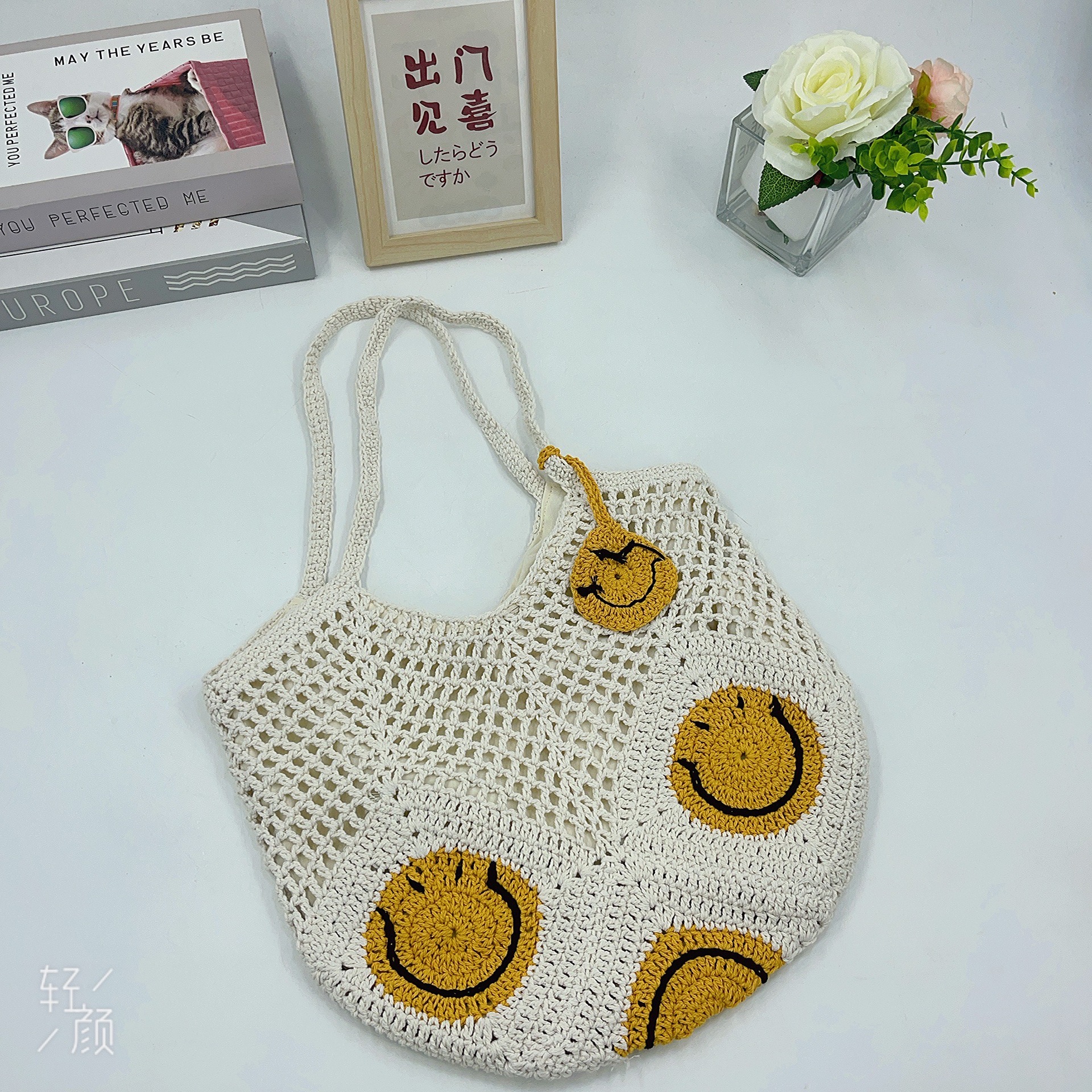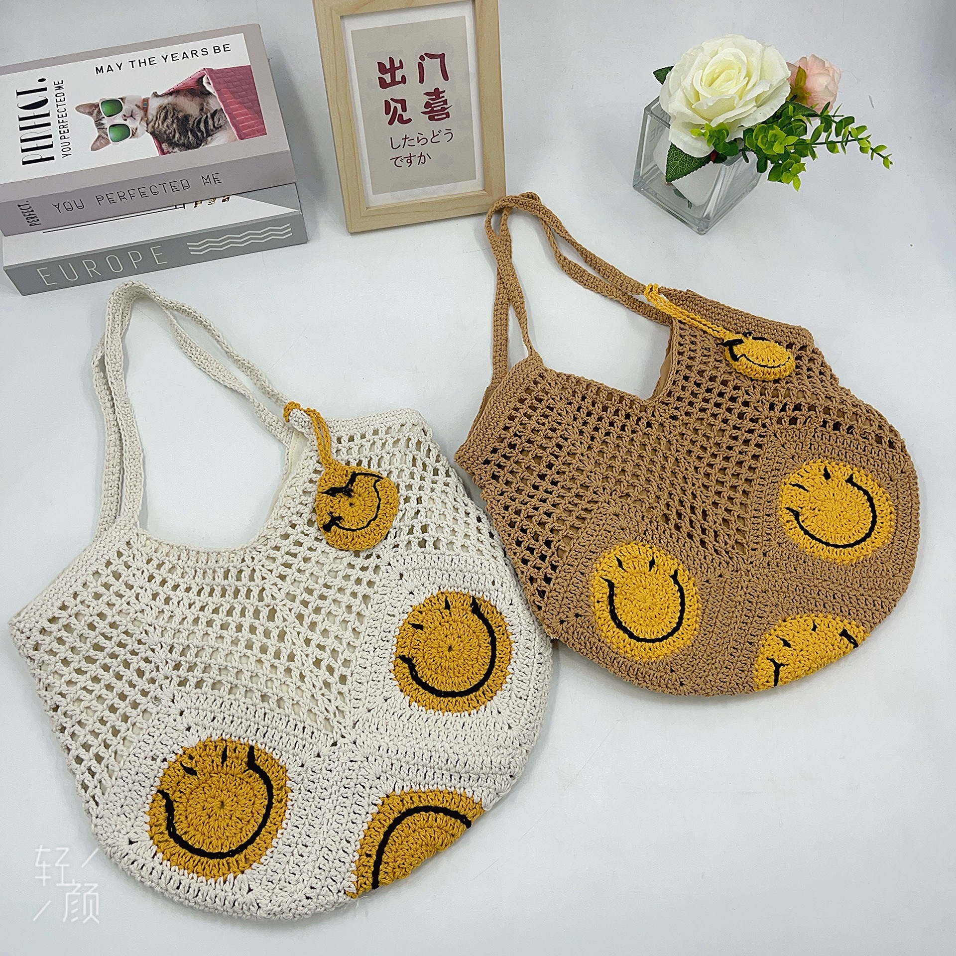 Hanfeng ins2025 новые смайлик тканые хлопчатобумажные хлопчатобумажные сумки повседневные дикие подмышки сумки на плечо сумки