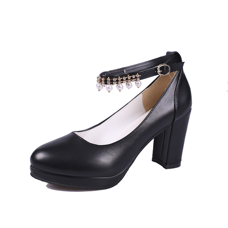 Главная страница > Весной и осенью Новая женская обувь с жемчужной цепочкой на высоком каблуке на толстой подошве, профессиональная обувь больших размеров на толстом каблуке, рабочая женская обувь