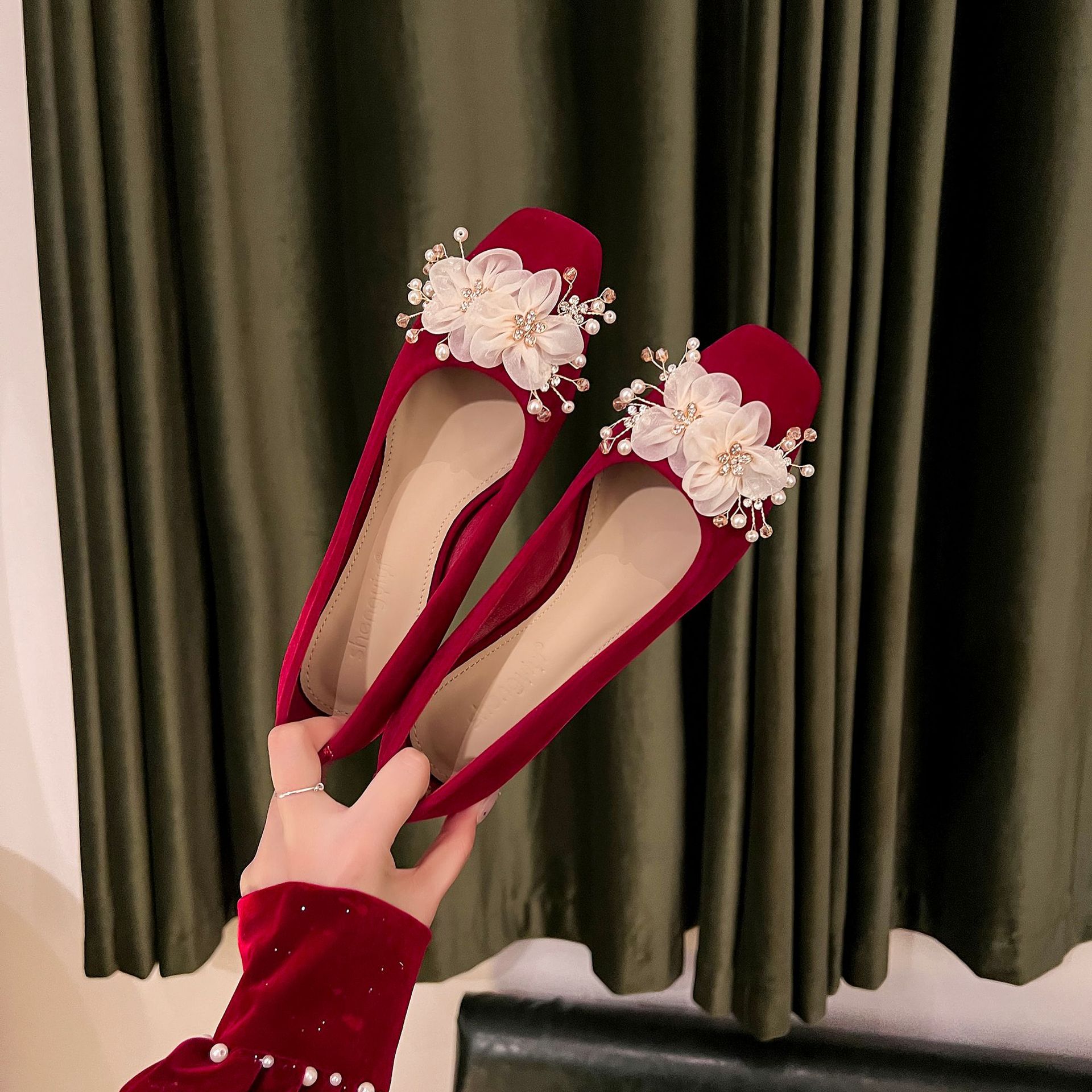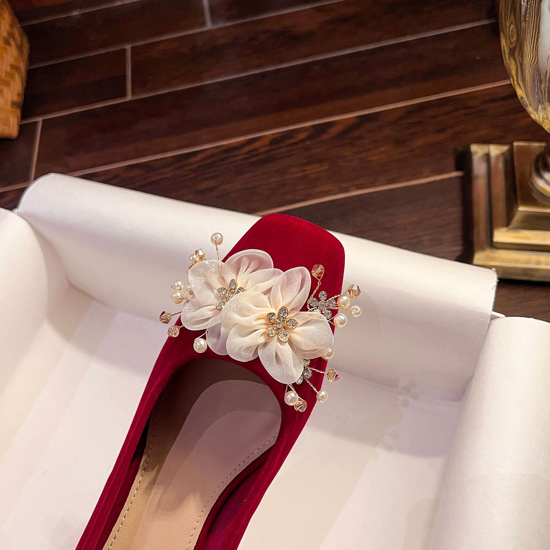 Главная страница > 666-22 Новые Свадебные Туфли Невесты Бархат Красный Высокий Каблук Квадратная Голова Xiuhe Свадебное Платье Две Одежды Не Устали Ноги Обручальные Туфли