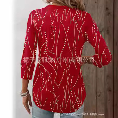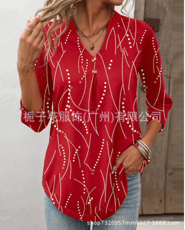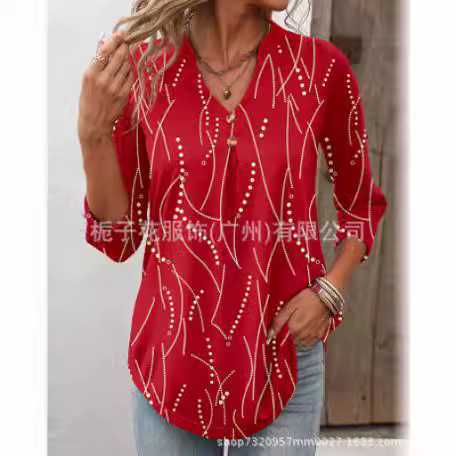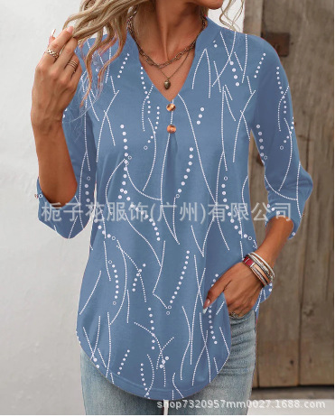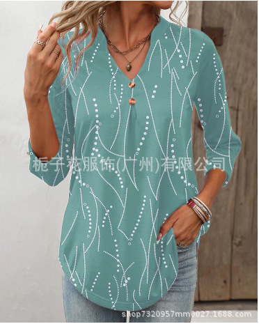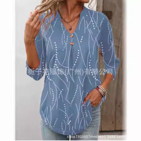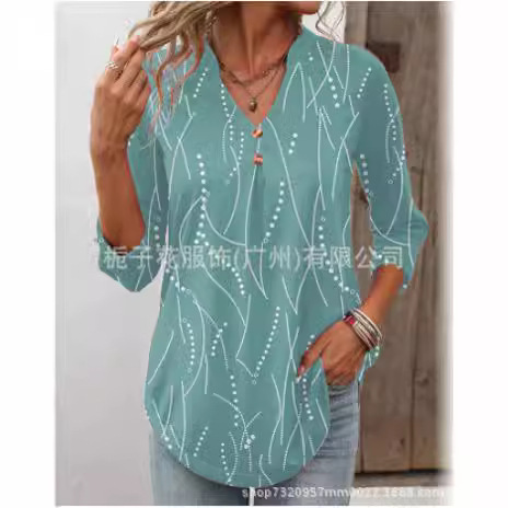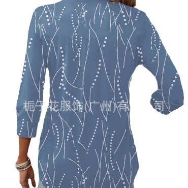 Главная страница > Трансграничная женская футболка Amazon AliExpress, поставка независимых станций, Повседневная футболка с длинными рукавами и геометрическим принтом на пуговицах для женщин