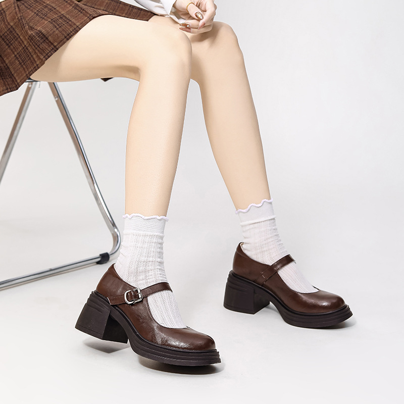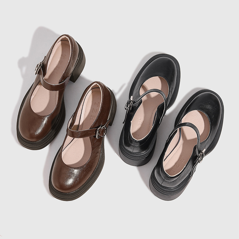 Главная страница > Женские кожаные туфли в стиле колледжа 2025 года, новые туфли Мэри Джейн на низком толстом каблуке для широкой стопы