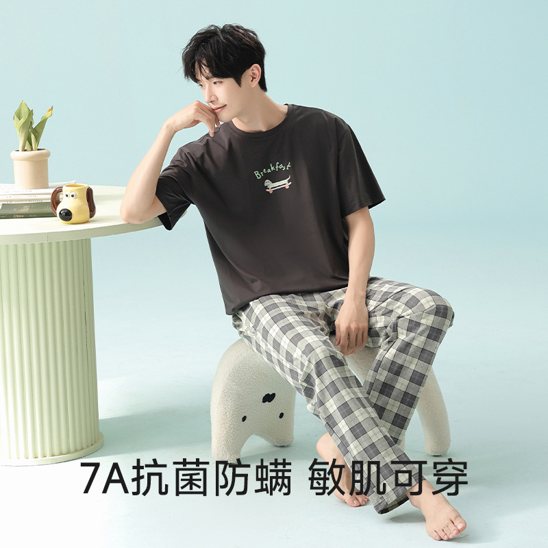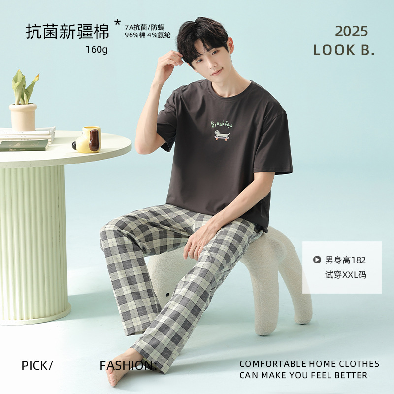 Главная страница > [Антибактериальный хлопок] Летние мужские пижамы из чистого хлопка, брюки с короткими рукавами, тонкий стиль из эластичного хлопка, можно носить как домашнюю одежду на улице.