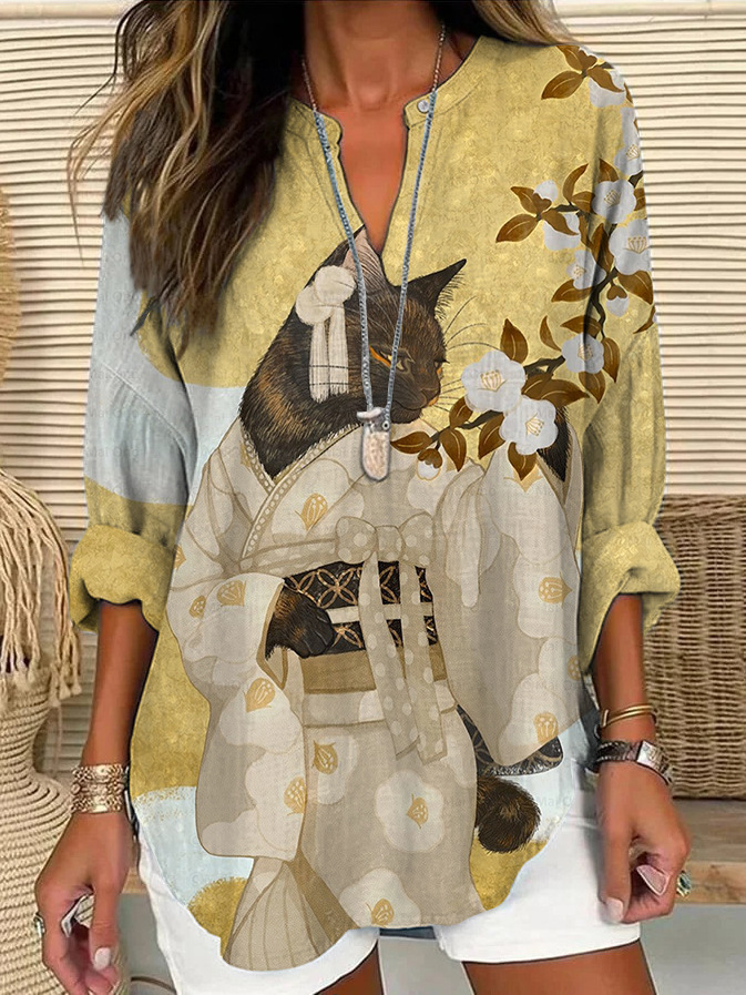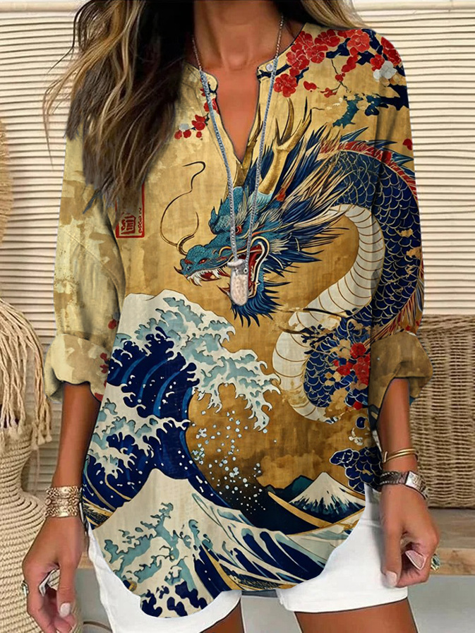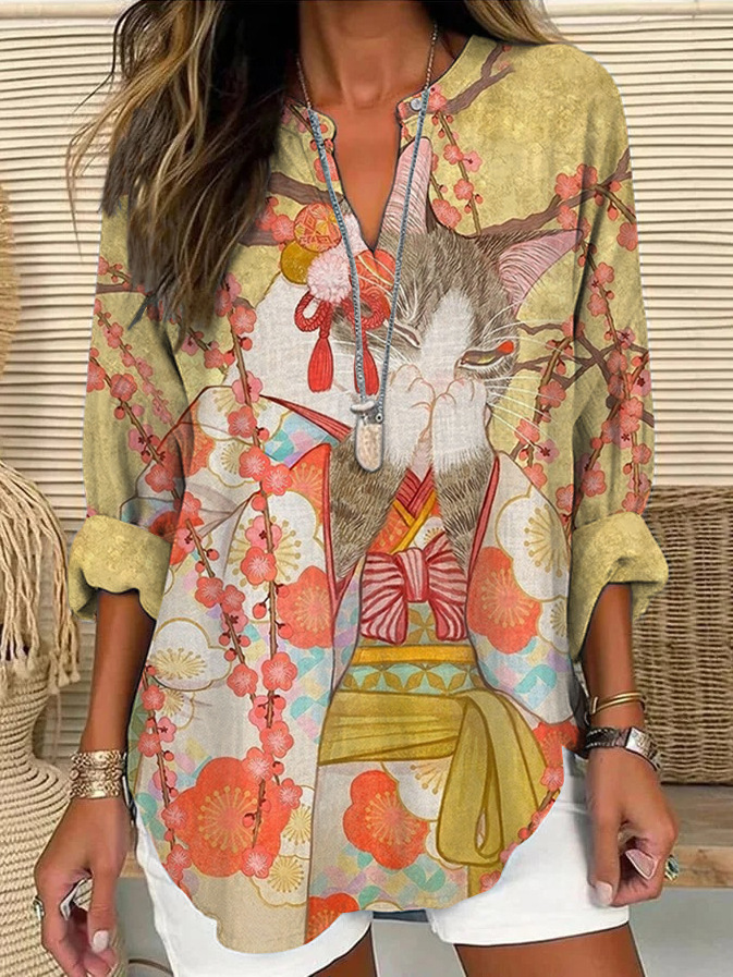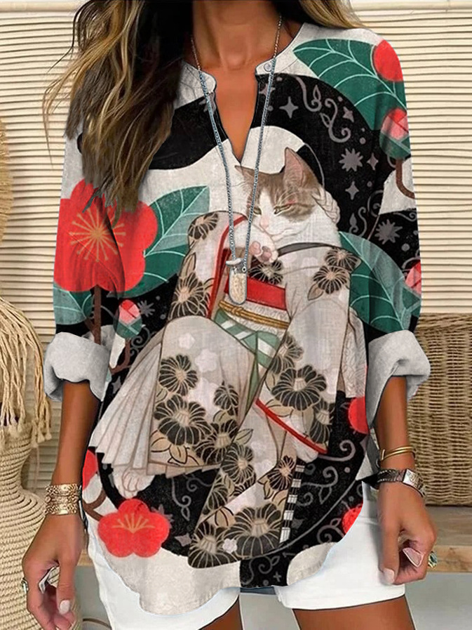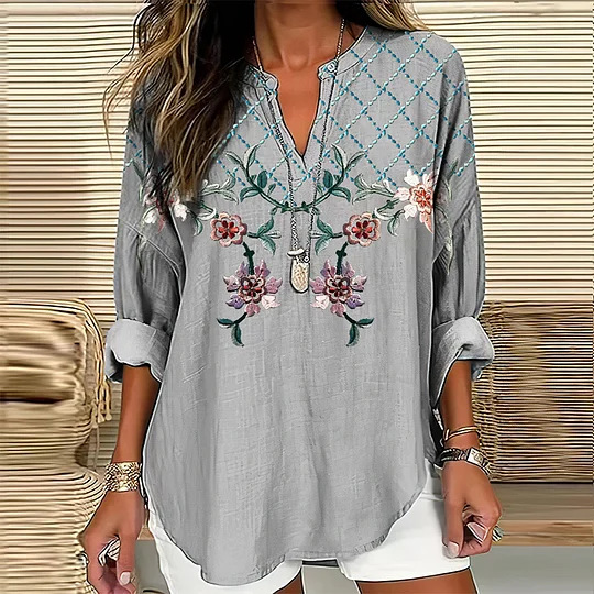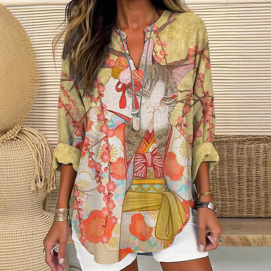 Главная страница > Весна 25, внешняя торговля, трансграничная европейская и американская горячая распродажа, модная карнавальная распечатка, популярная женская футболка с v-образным вырезом и длинными рукавами, рубашка