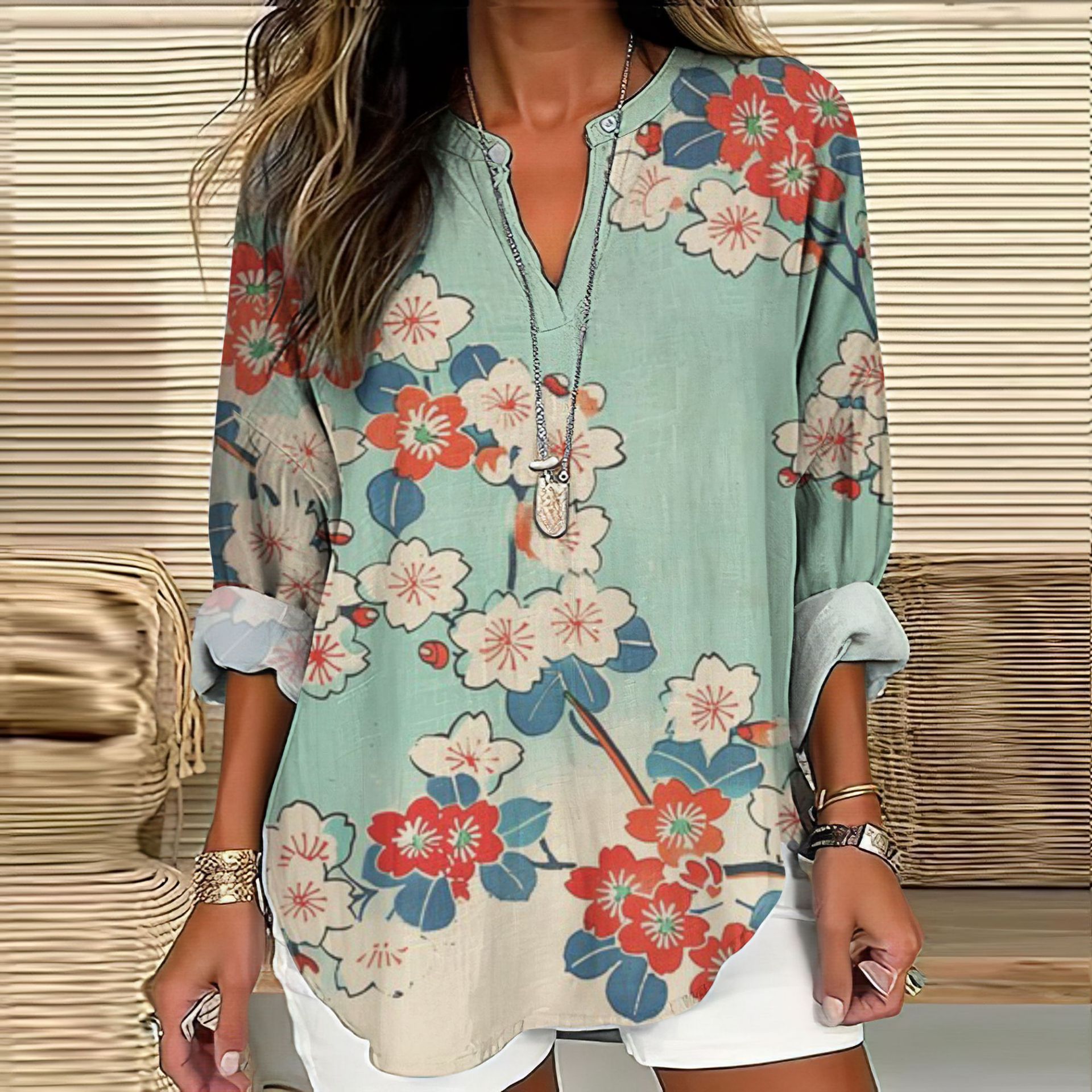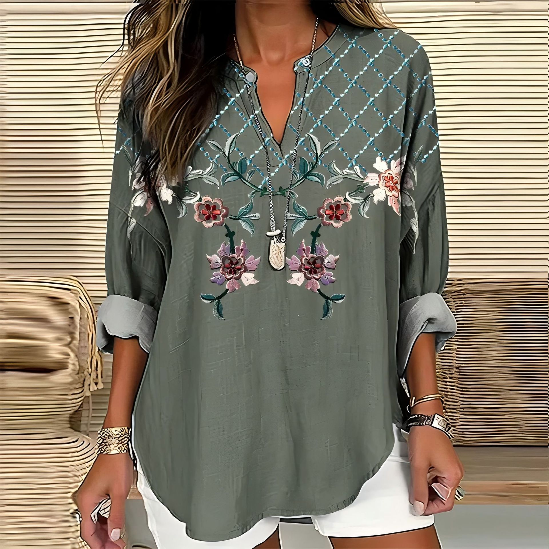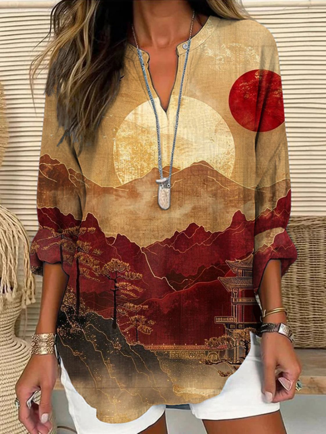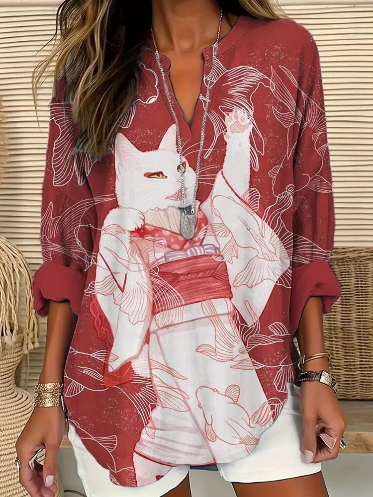 Главная страница > Весна 25, внешняя торговля, трансграничная европейская и американская горячая распродажа, модная карнавальная распечатка, популярная женская футболка с v-образным вырезом и длинными рукавами, рубашка