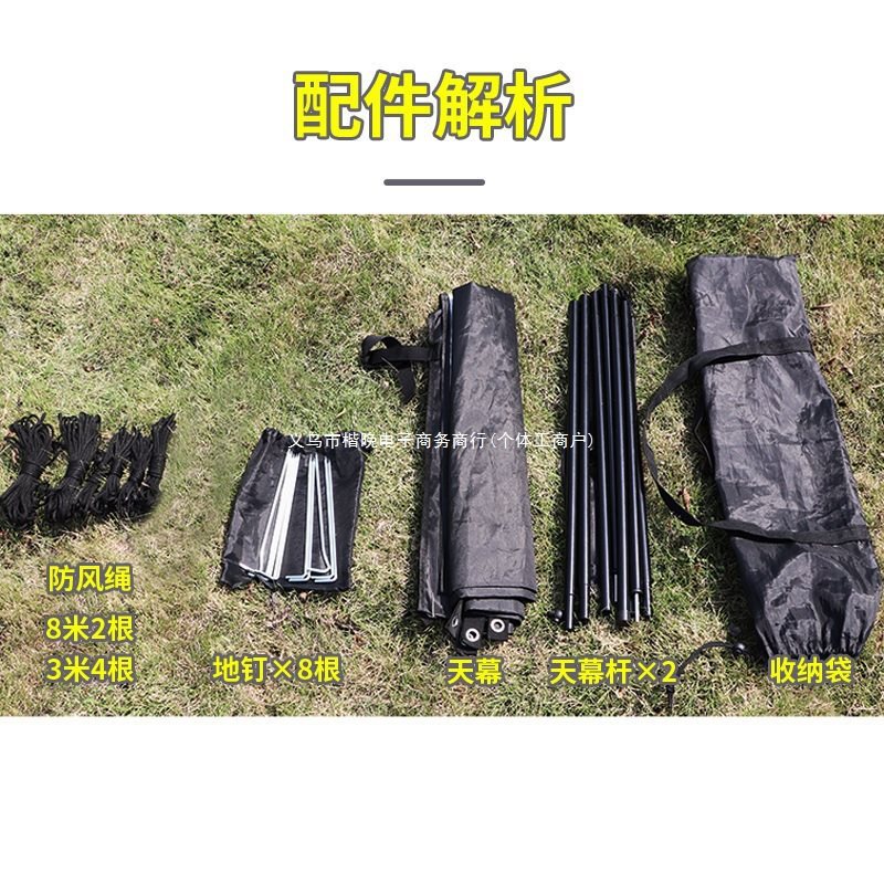 Черная автомобильная боковая палатка [беструбные гвозди из веревки Феникса] небольшой размер S 300*150 см, несколько человек