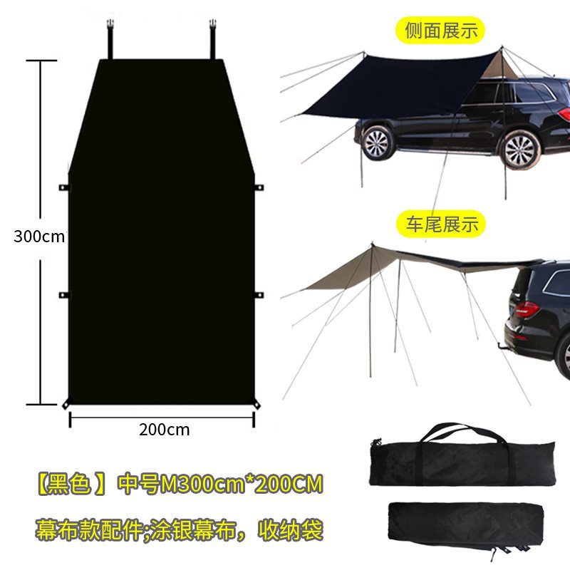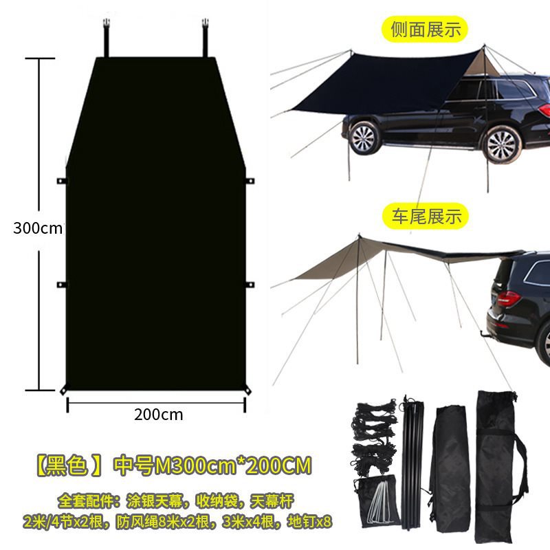 Черная боковая палатка для автомобиля [безтрубные напольные гвозди из веревки Phoenix] среднего размера M 300*200 см, несколько человек