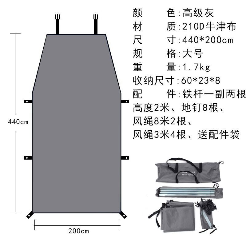 Серая боковая палатка для автомобиля [с полным набором аксессуаров] большого размера 440*200 см