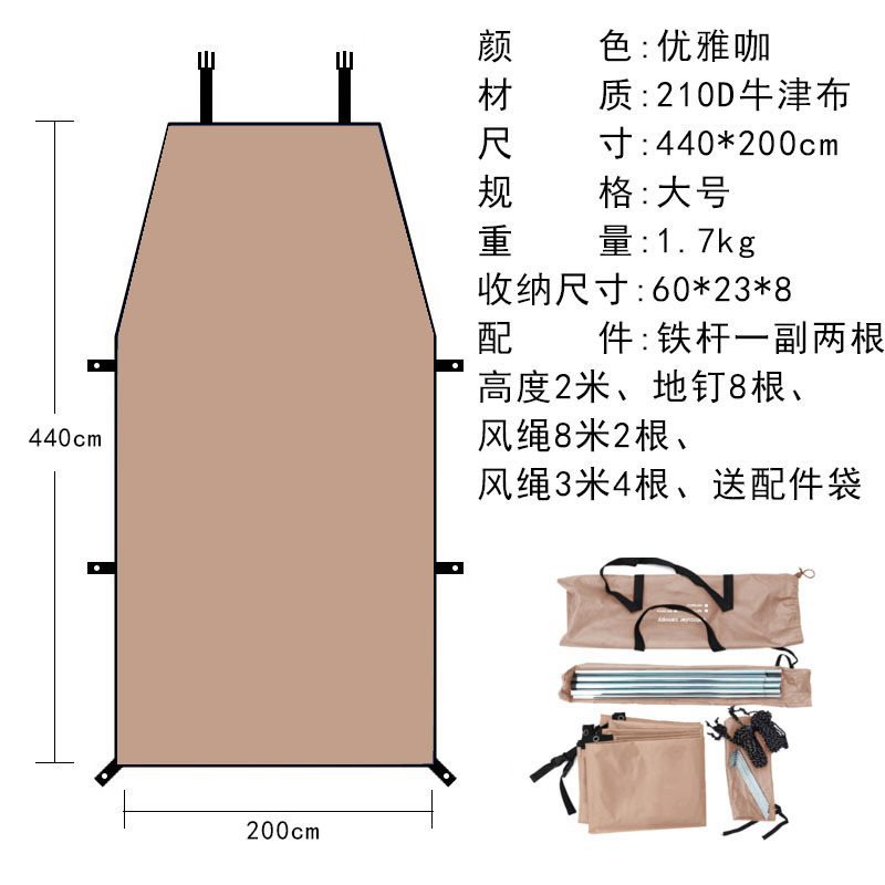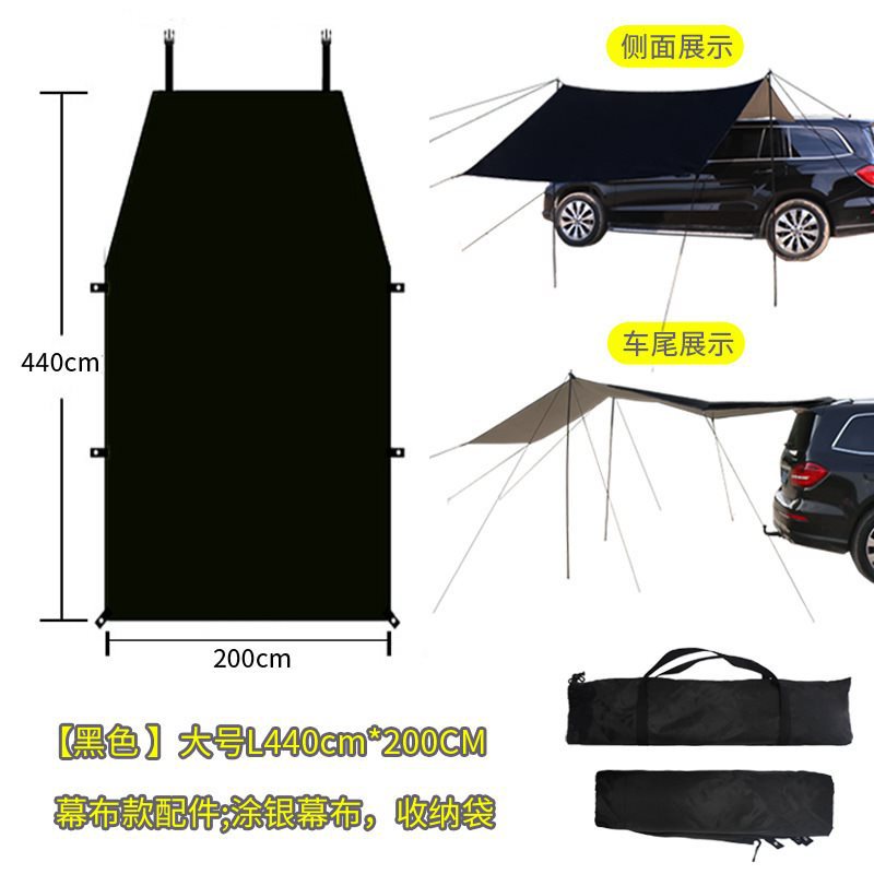 Черная автомобильная боковая палатка [с полным набором аксессуаров] большого размера L 440*200 см, несколько человек