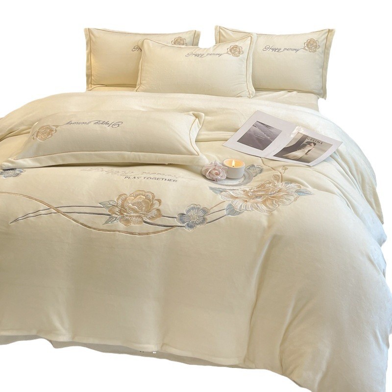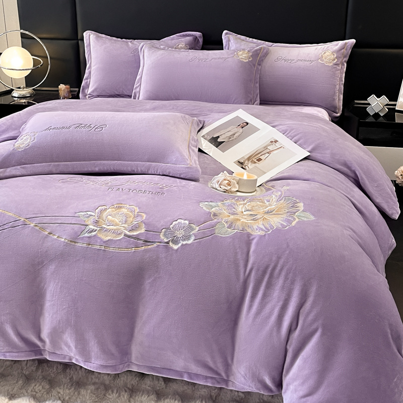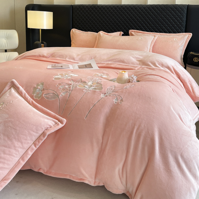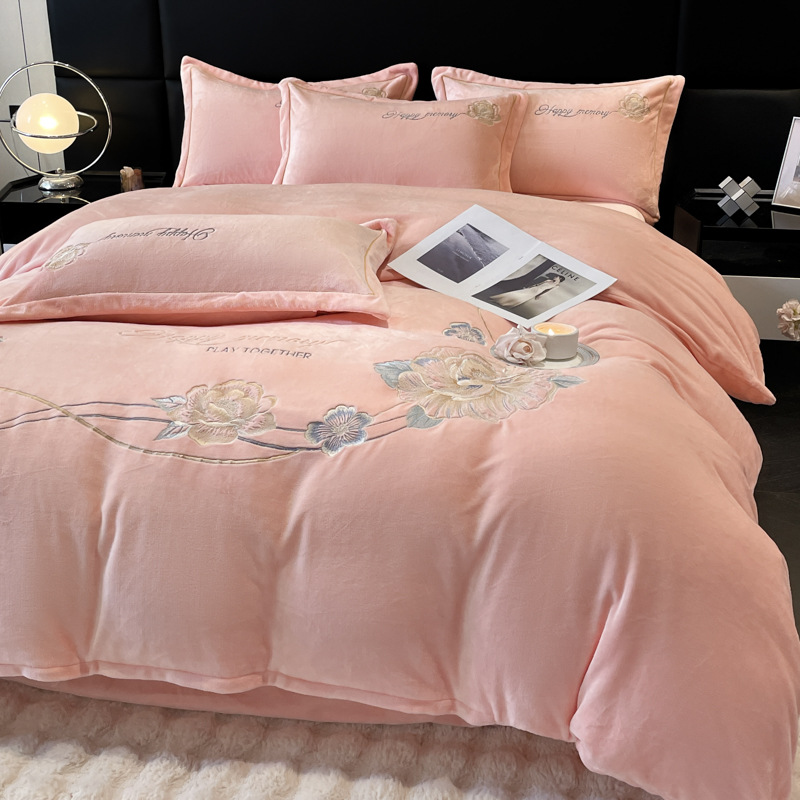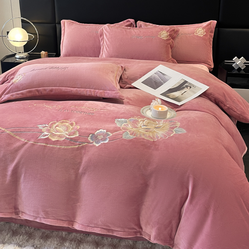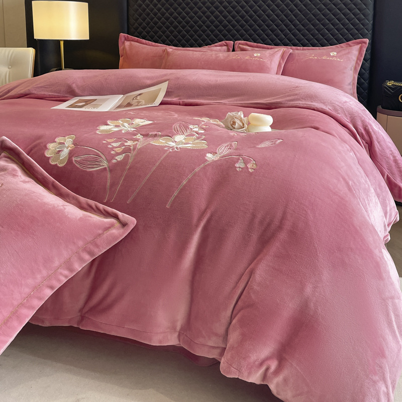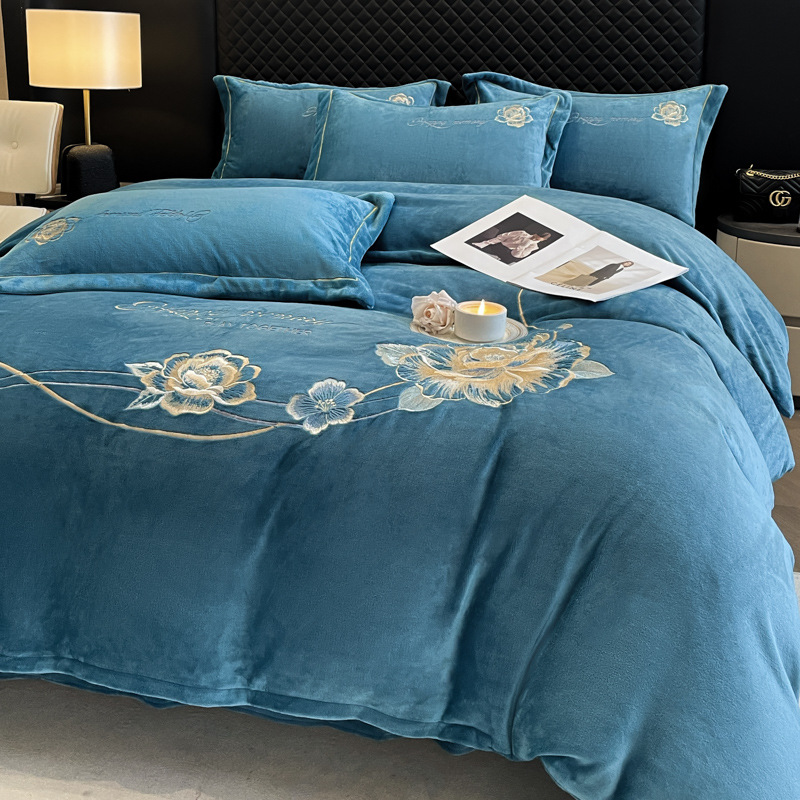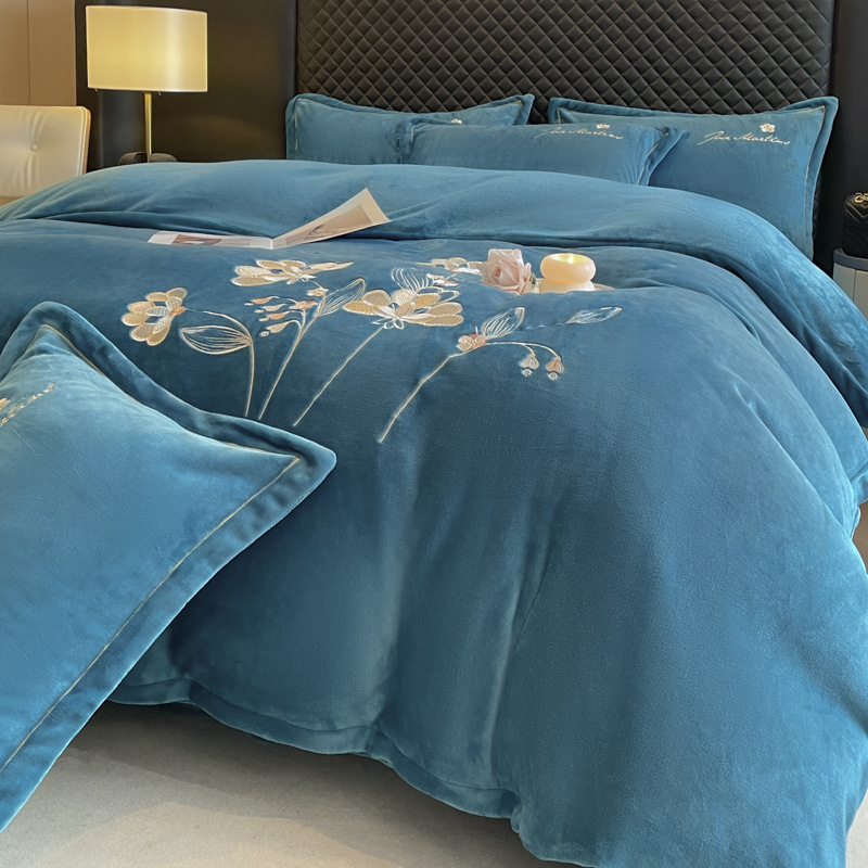 Главная страница > Новый стиль утолщенный теплый молочный бархат вышивка из четырех частей зимний коралловый бархат простыни одеяло двухсторонний фланель