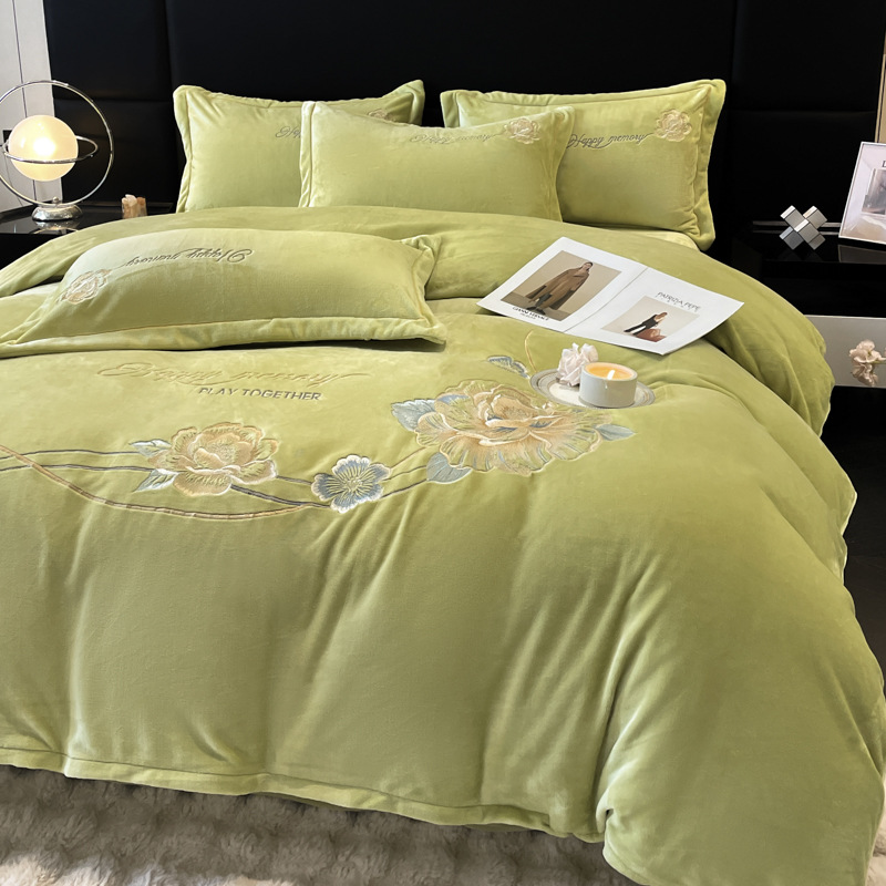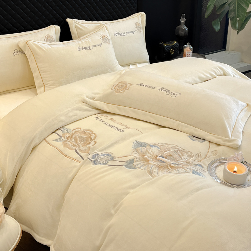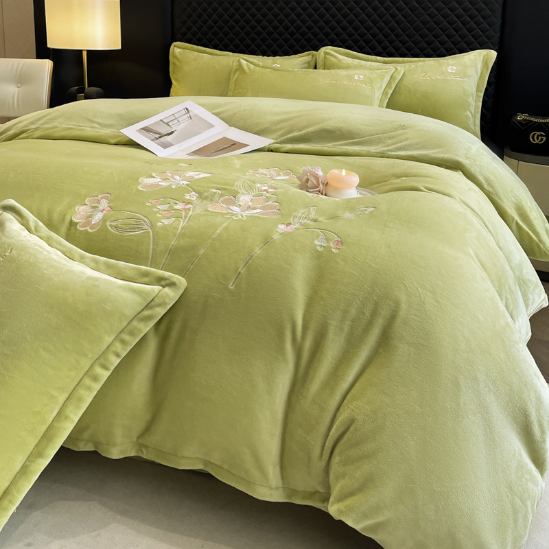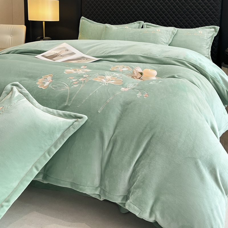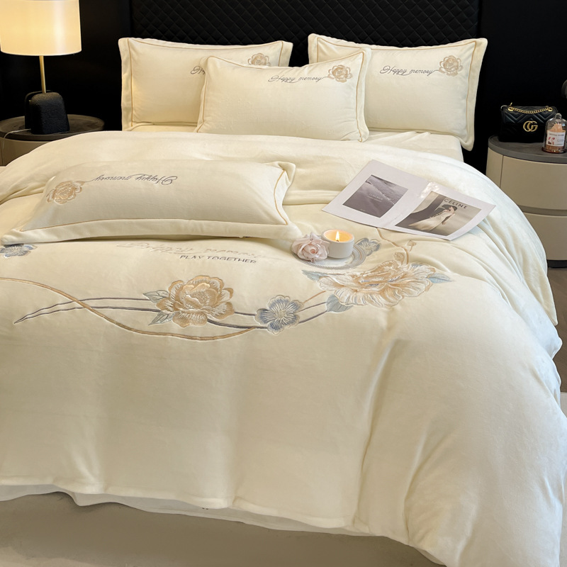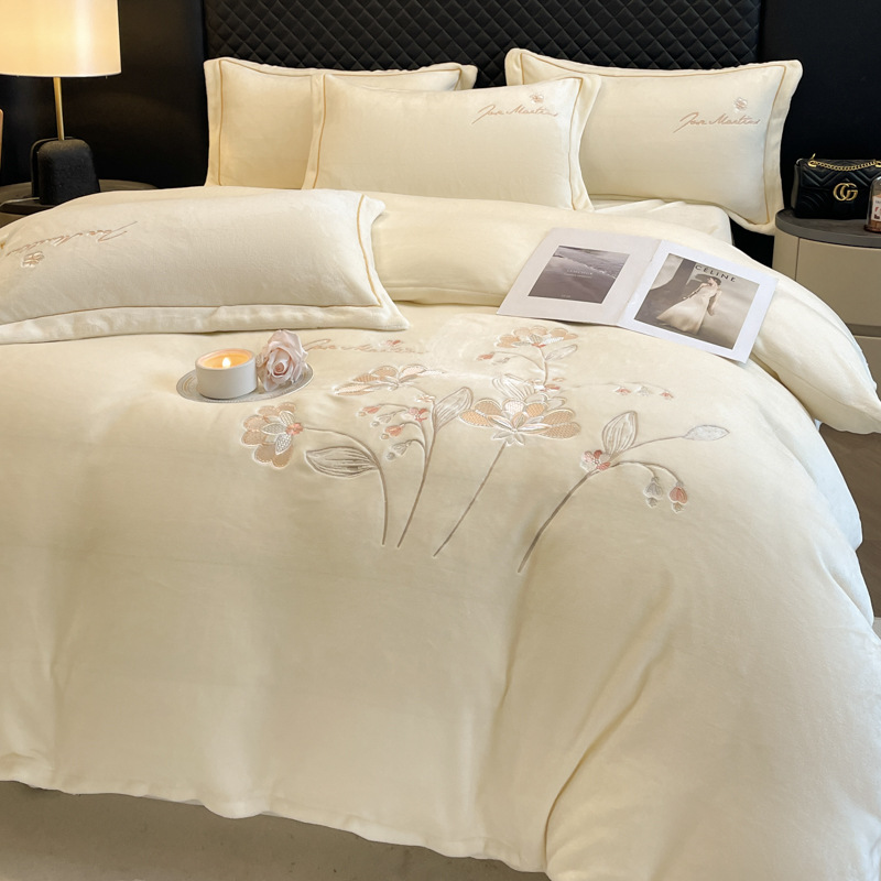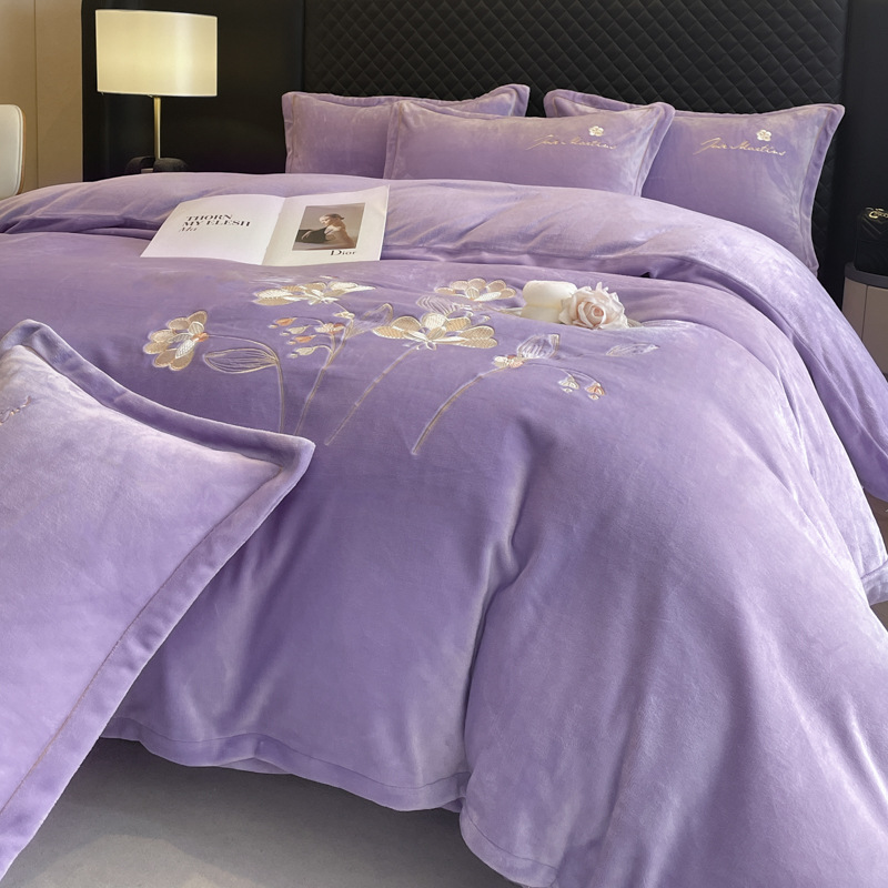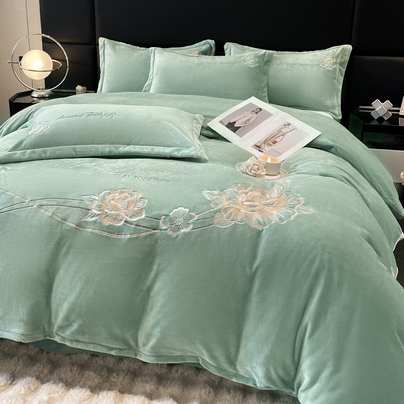 Главная страница > Новый стиль утолщенный теплый молочный бархат вышивка из четырех частей зимний коралловый бархат простыни одеяло двухсторонний фланель