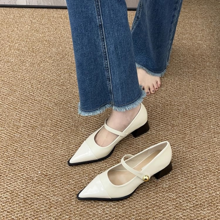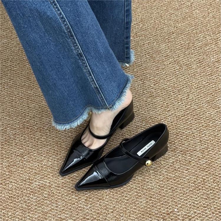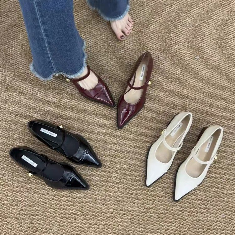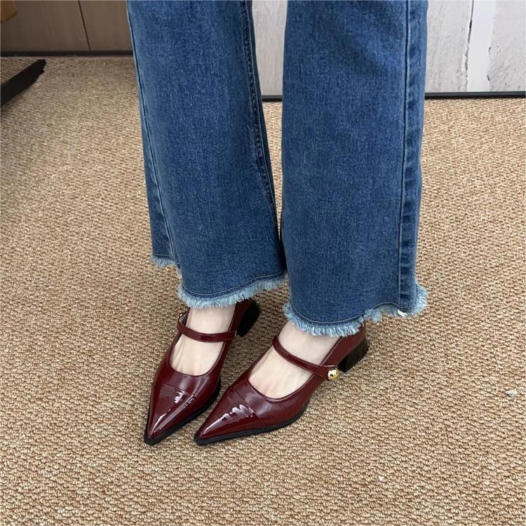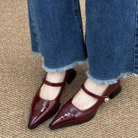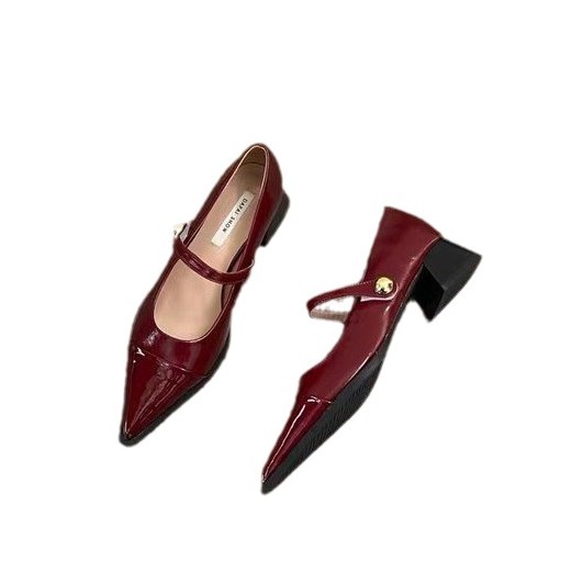 Главная страница > Модные туфли на высоком каблуке вишневого цвета 2025 года, в стиле французского ретро, с пряжкой, заостренным носком и массивным каблуком.
