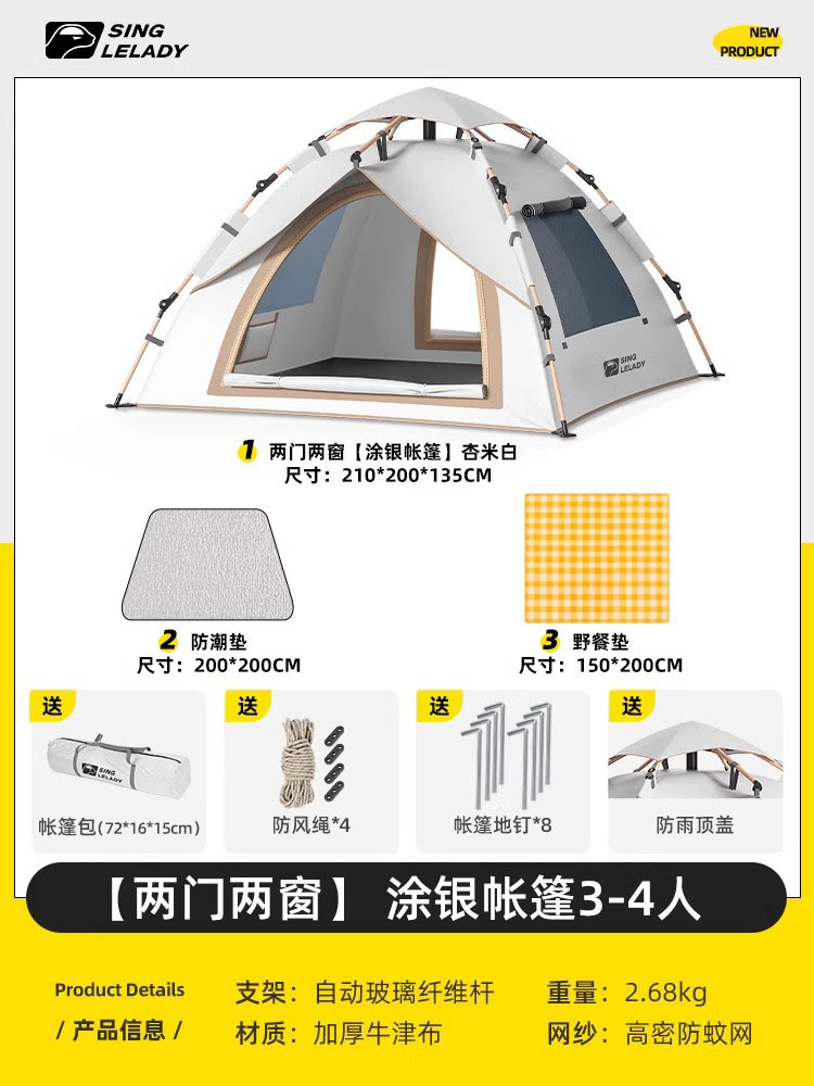 Утолщенная солнцезащитная палатка для кемпинга, уличная палатка, оборудование для кемпинга, непромокаемая, портативная, полностью автоматическая, парковая, быстрораскрывающаяся, на ночь, бесплатная доставка