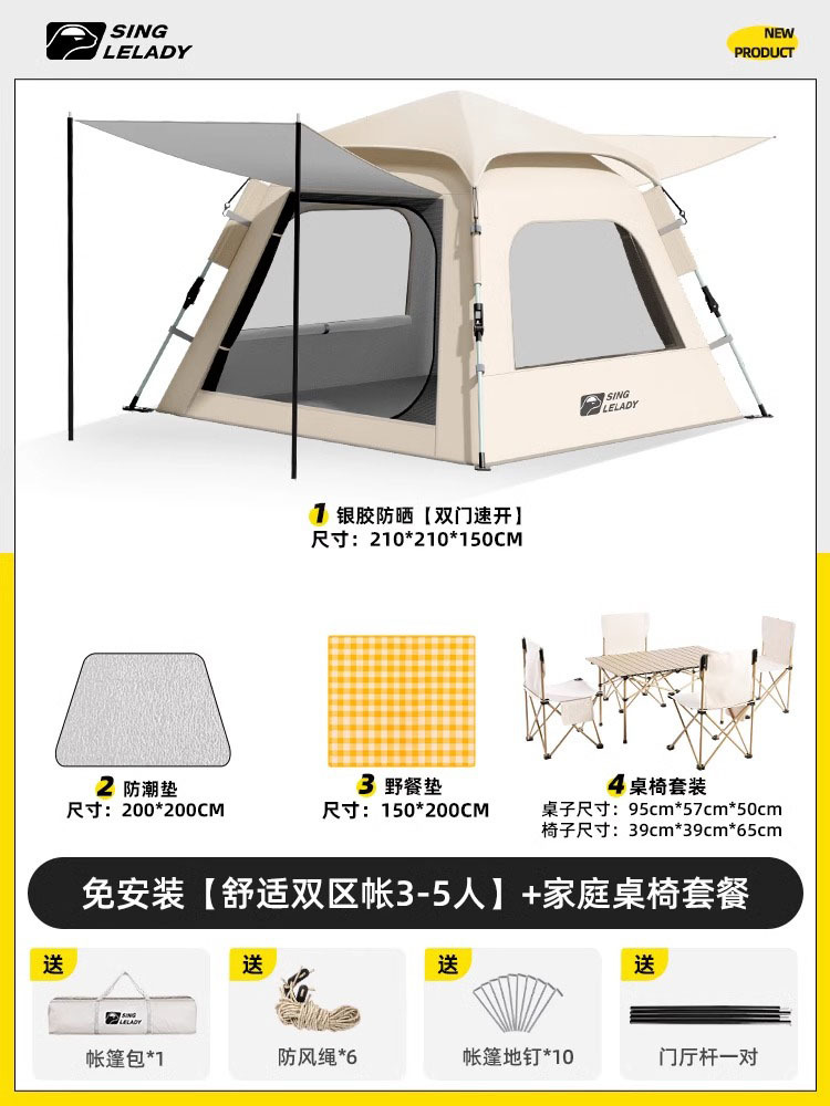 3-5 человек [двухместная палатка Shuju · установка не требуется] + комплект семейного стола и стульев