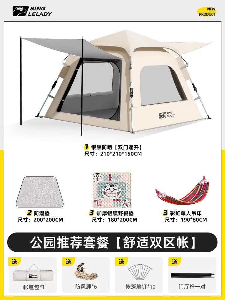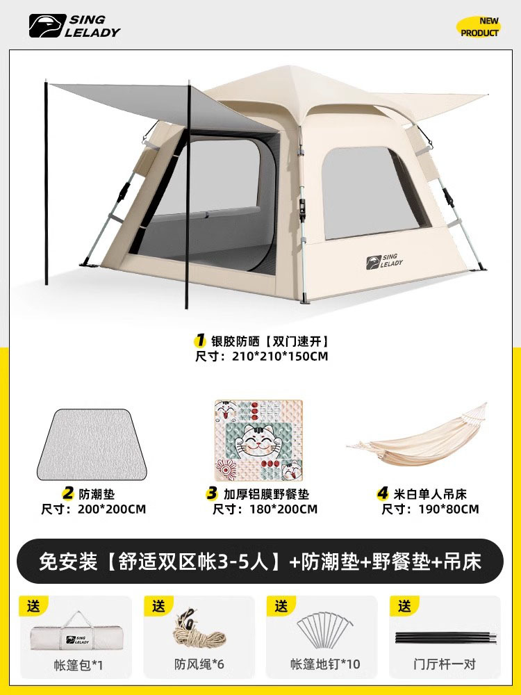 3-5 человек [двухзонная палатка Shuju · установка не требуется] + влагостойкий коврик + коврик для пикника + гамак