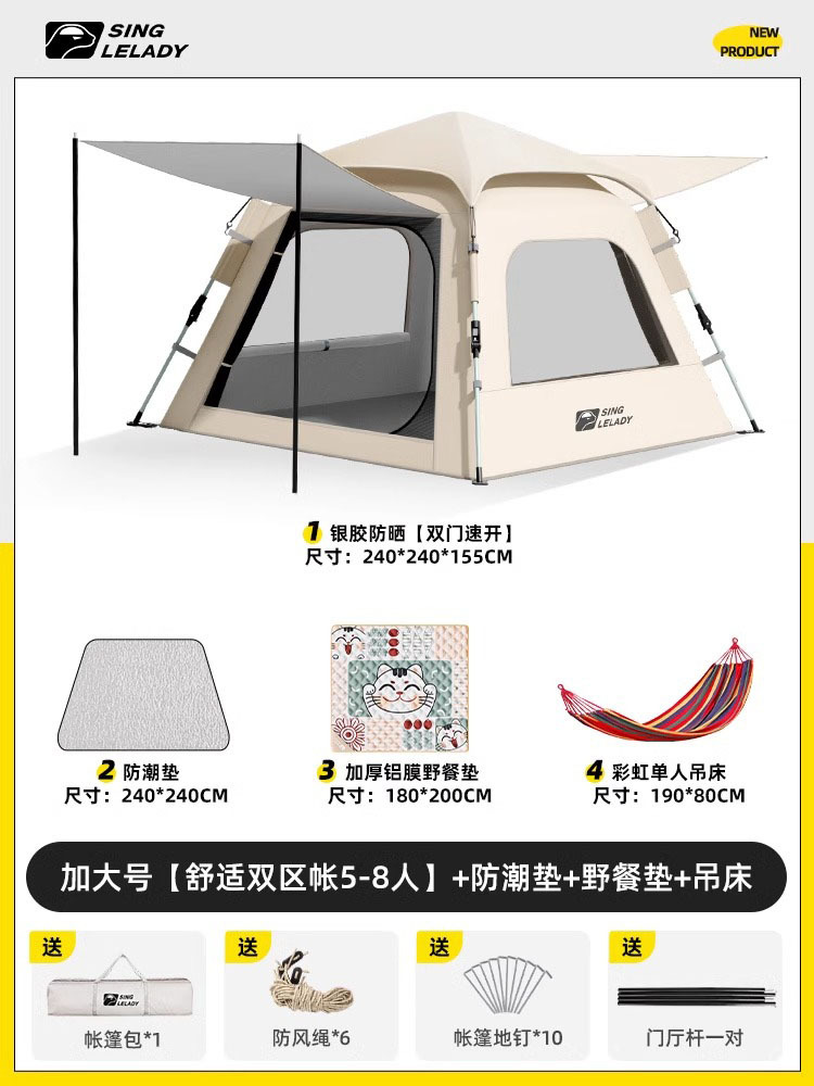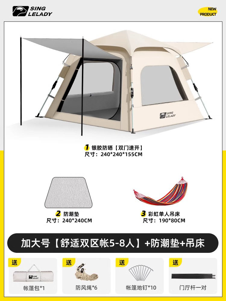 5-8 человек [Двухзонная палатка Shuju · Очень большой размер] + Влагостойкий коврик + Коврик для пикника + Гамак