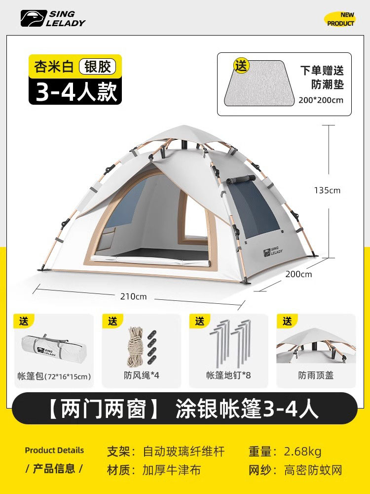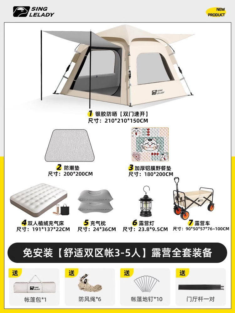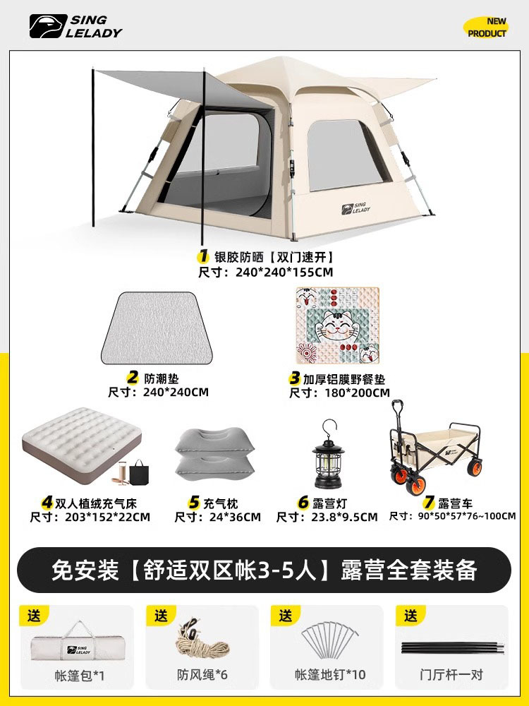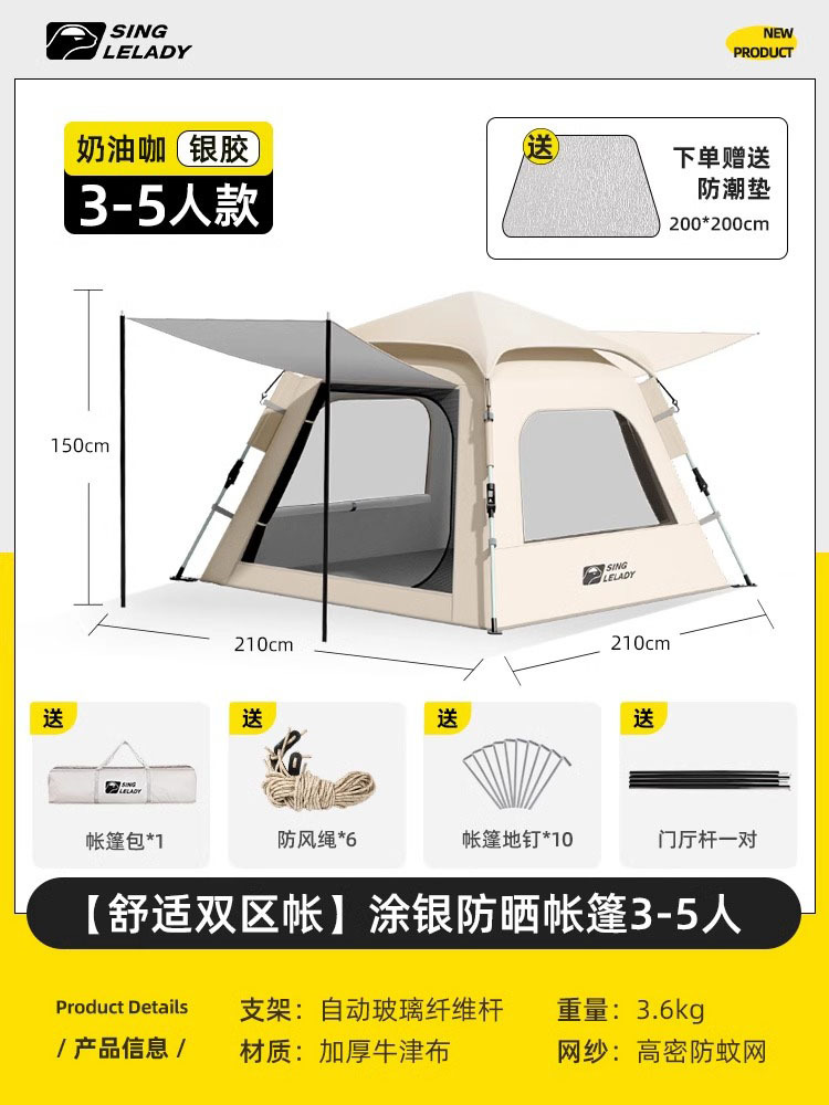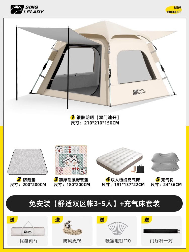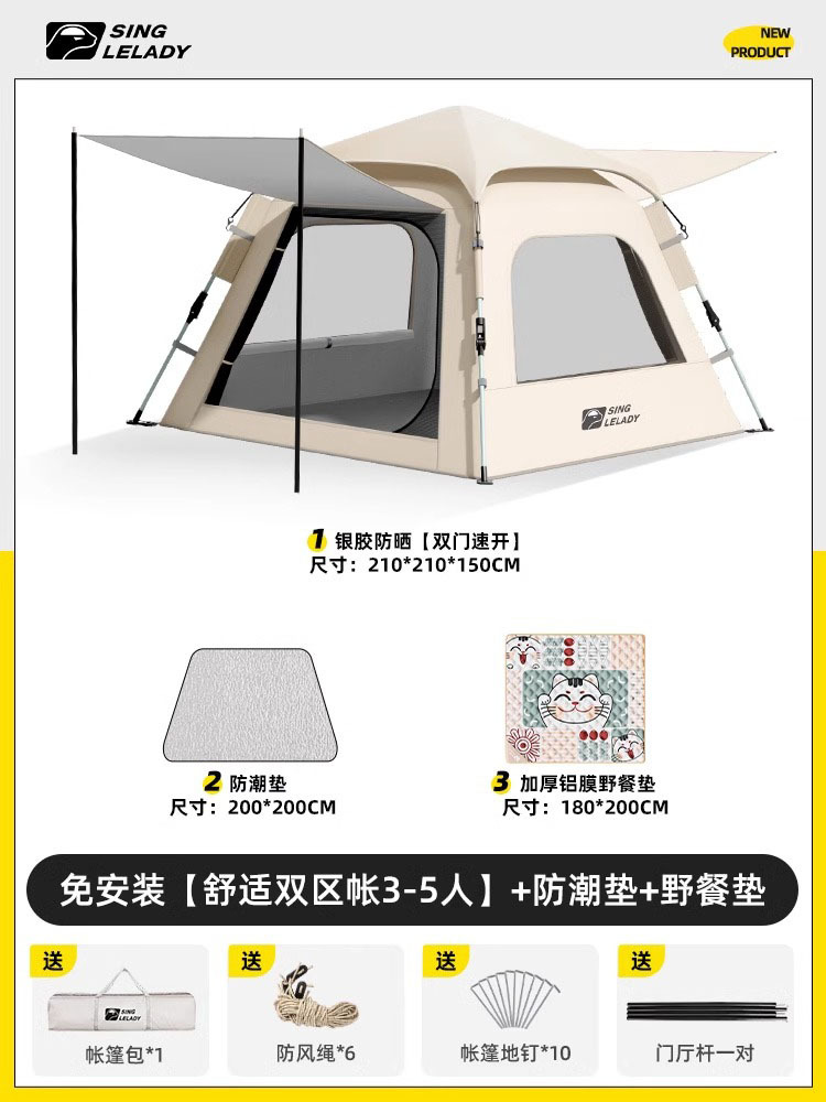3-5 человек [двухзонная палатка Shuju · установка не требуется] + влагостойкий коврик + коврик для пикника (очень толстый кот 7 мм)