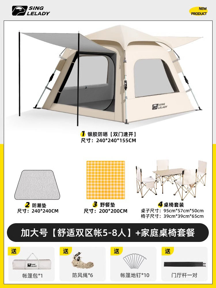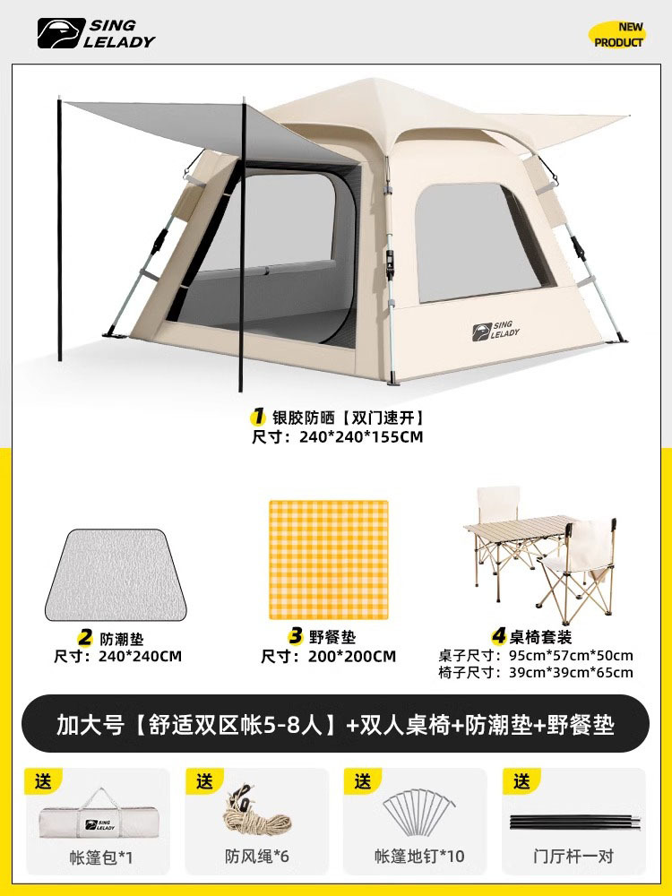 5-8 человек [двухместная палатка Shuju · размер XL] + двойной стол и стулья + влагостойкий коврик + коврик для пикника