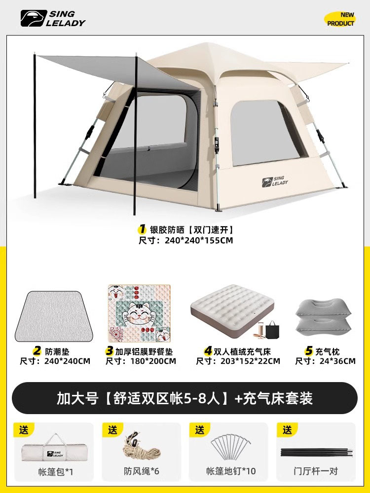 5-8 человек [Двухзонная палатка Shuju · Очень большой размер] Полное туристическое снаряжение