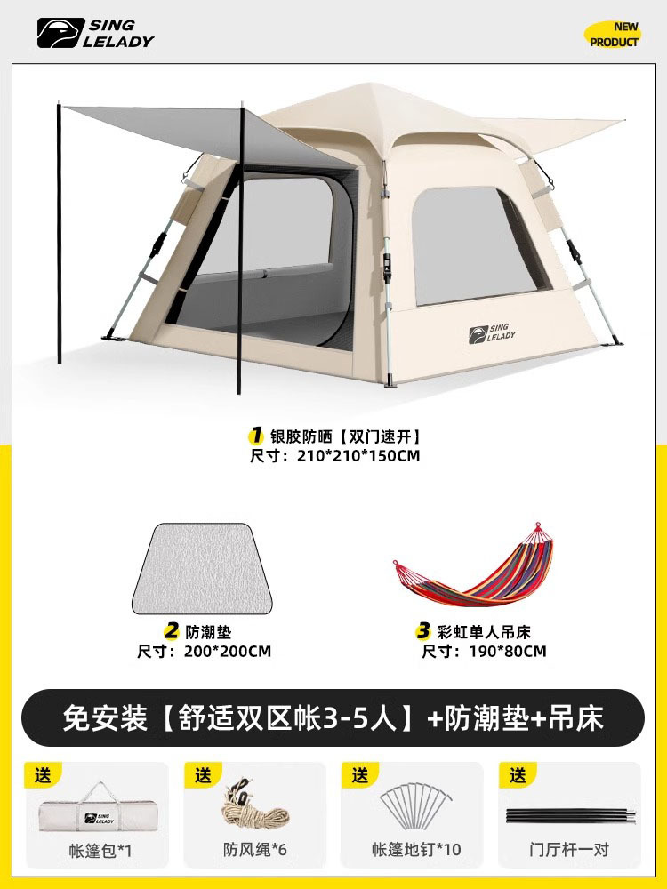 3-5 человек [двухзонная палатка Shuju · установка не требуется] + влагостойкий коврик + гамак
