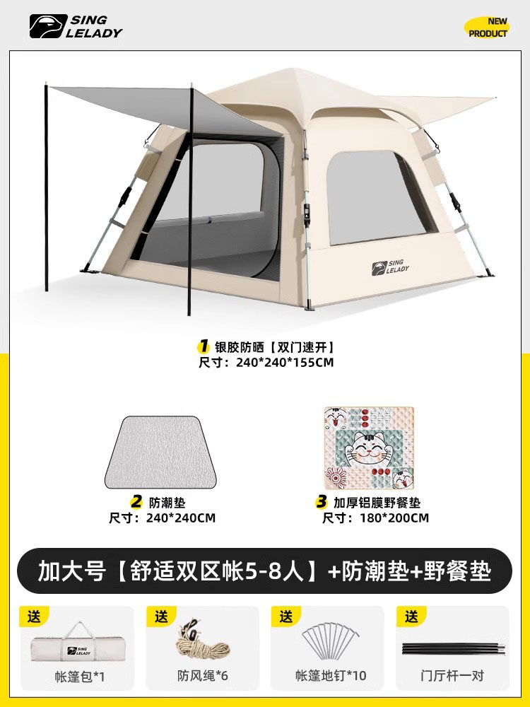 5-8 человек [Палатка Shuju Double Zone·XL] + Влагостойкий коврик + Коврик для пикника (очень толстый кот 7 мм)