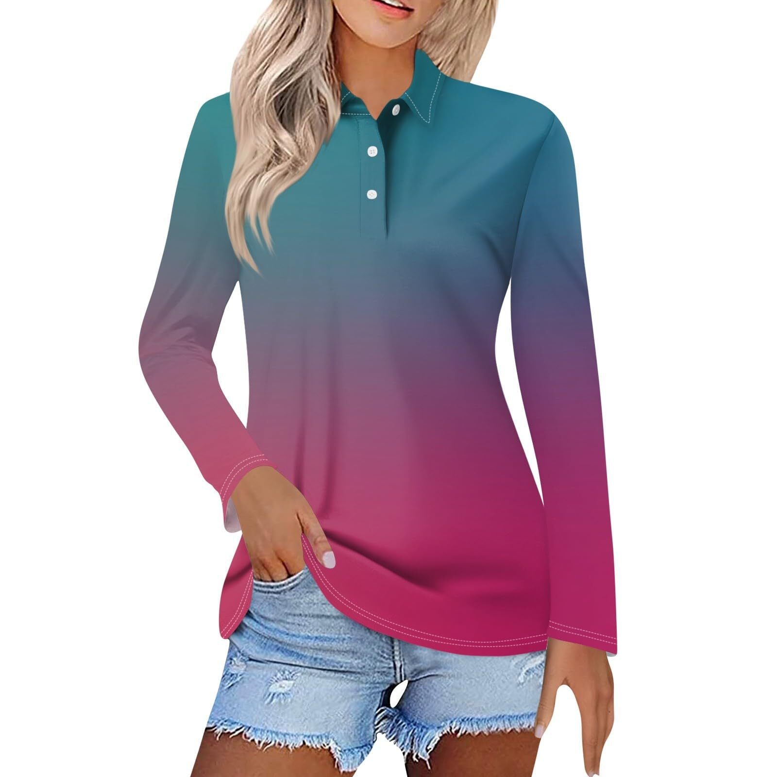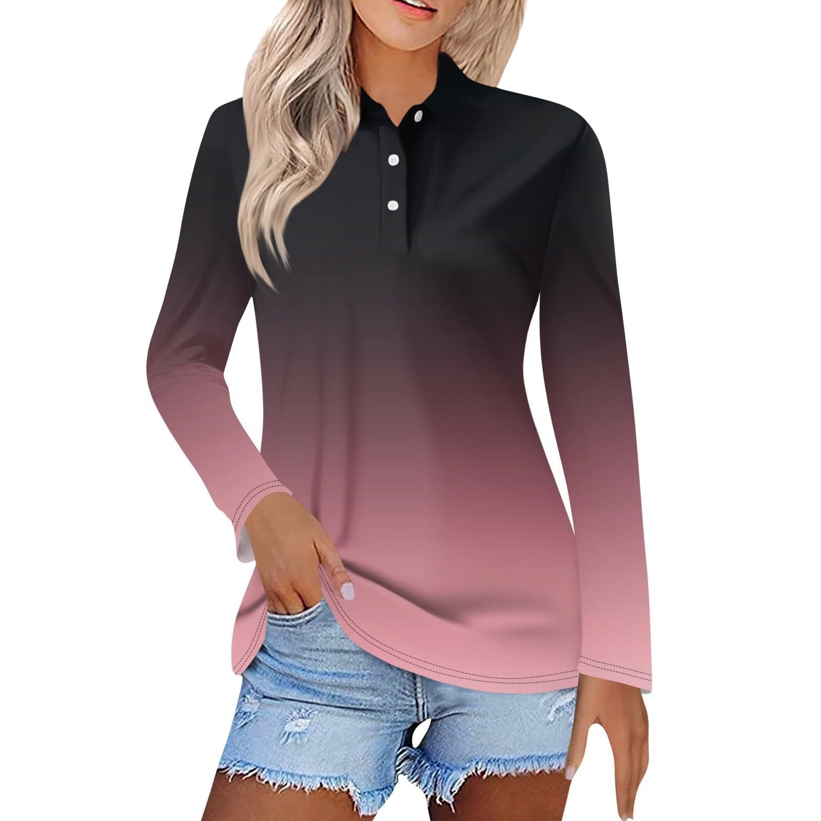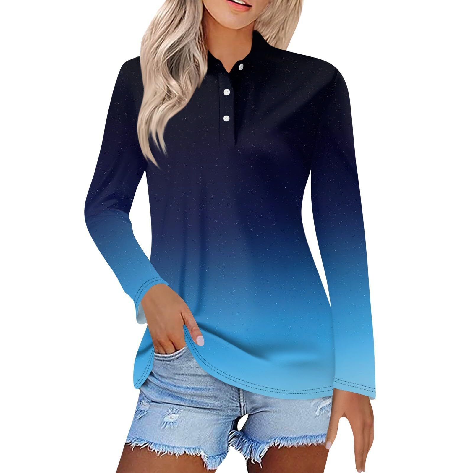 Главная страница > Женская весна и лето новый 2024 трансграничный градиент серии спотовая пуговица повседневная свободная футболка с длинными рукавами топ MB14
