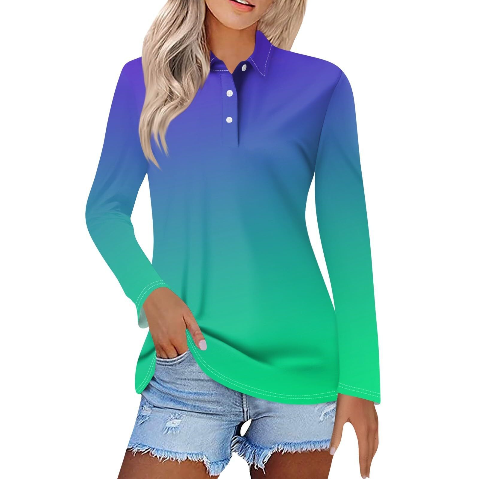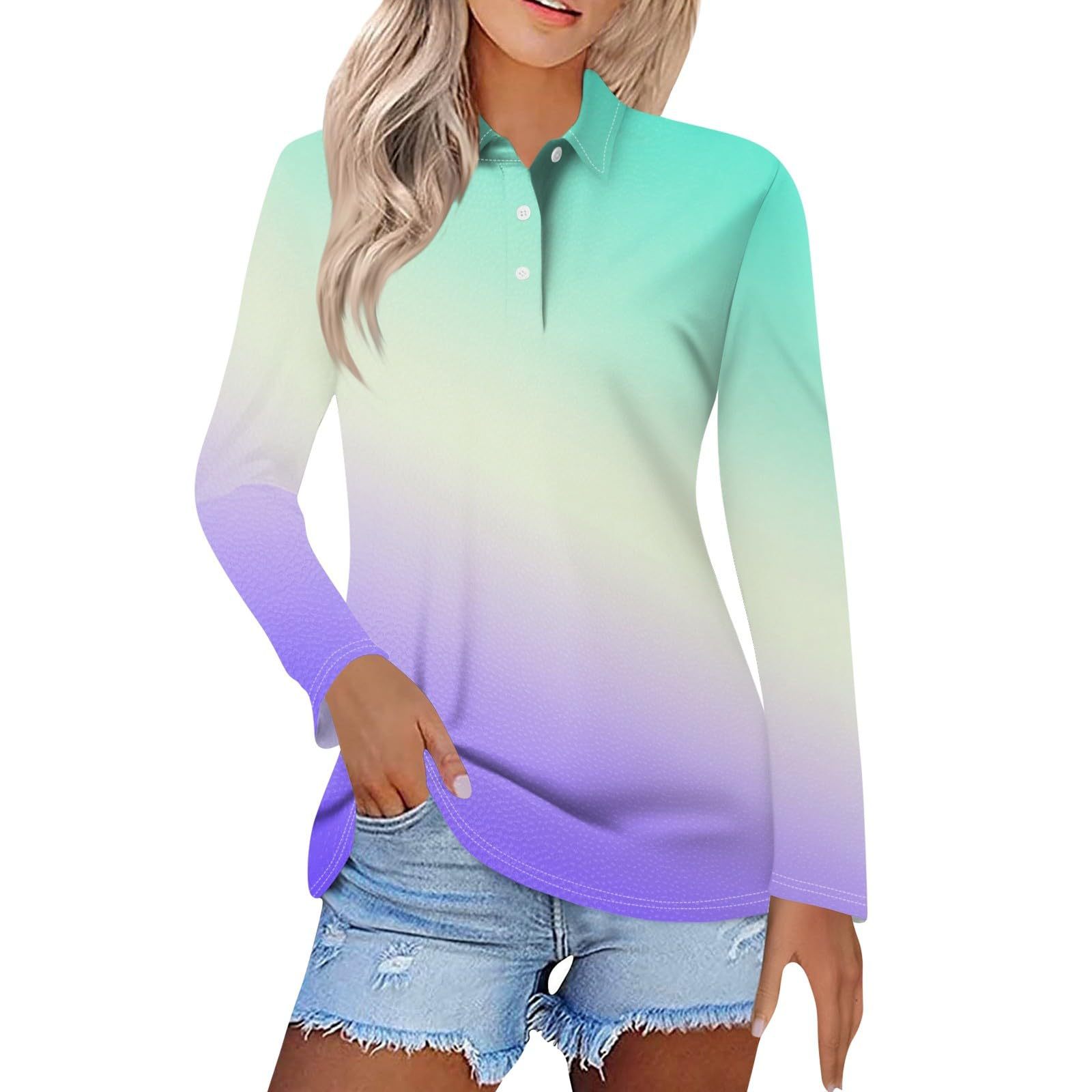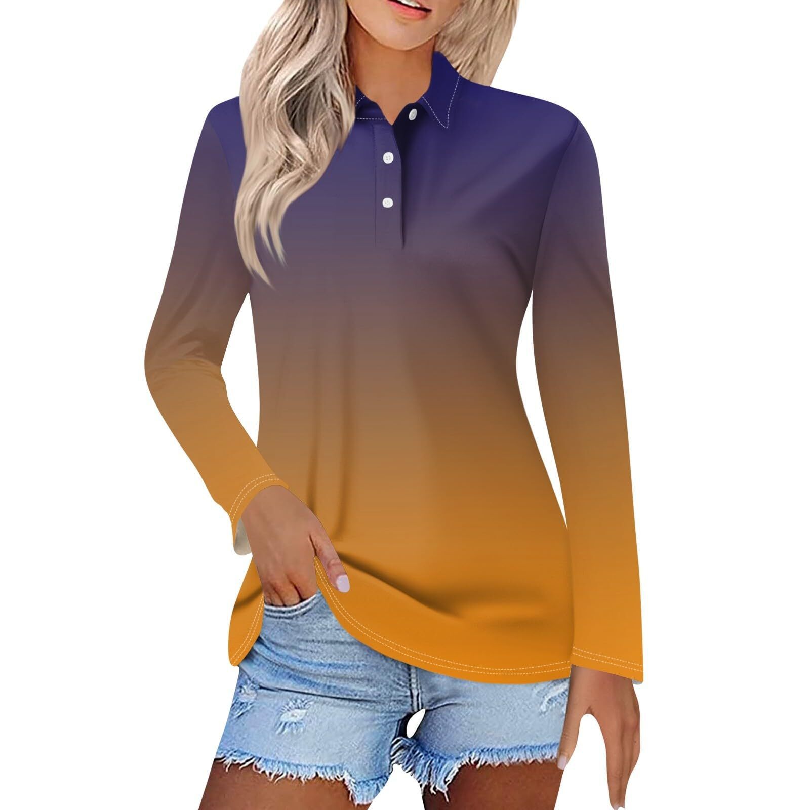 Главная страница > Женская весна и лето новый 2024 трансграничный градиент серии спотовая пуговица повседневная свободная футболка с длинными рукавами топ MB14