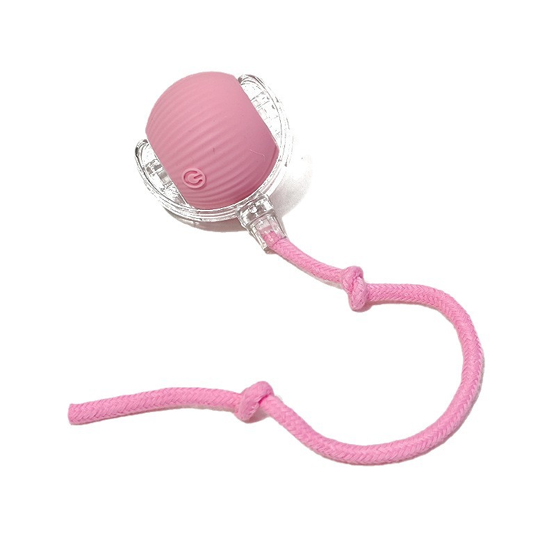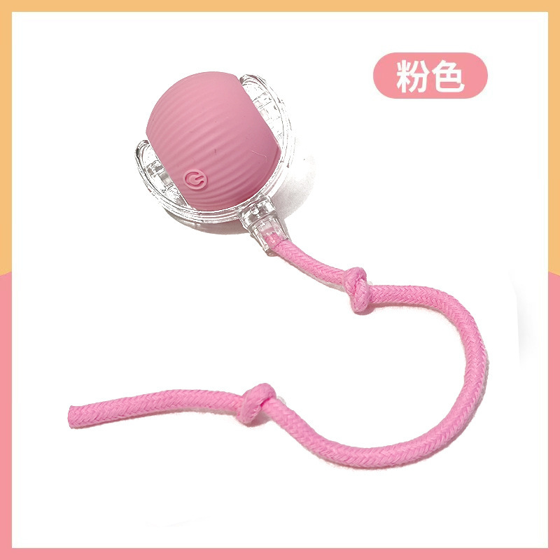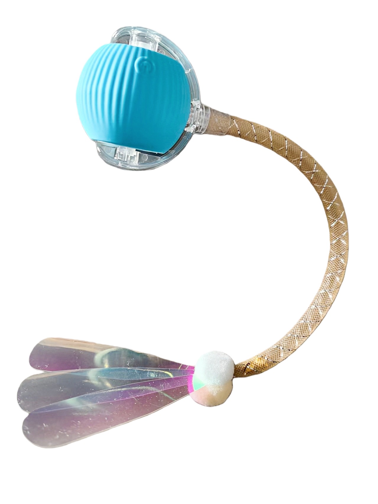 Синий прыгающий мячик с бесплатным розовым плюшевым хвостиком.