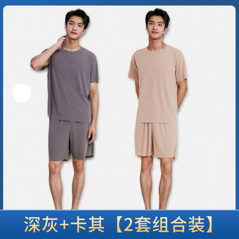 Главная страница > Летний мужской быстросохнущий домашний костюм 2025 года, свободный повседневный комплект из льняной ткани, футболка с коротким рукавом, тонкий