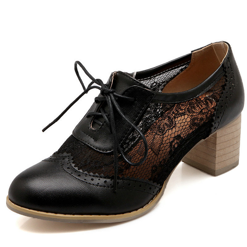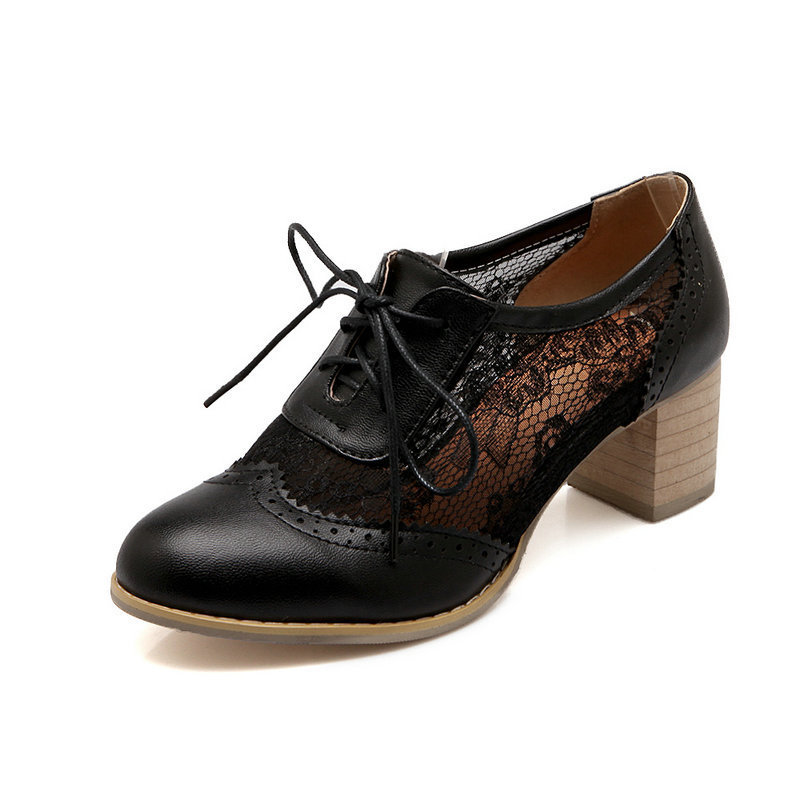 Главная страница > Женская обувь для внешней торговли, туфли Martin на шнуровке спереди, туфли на толстом каблуке с квадратным каблуком, элегантные ретро-модные Кружевные Полые одиночные туфли