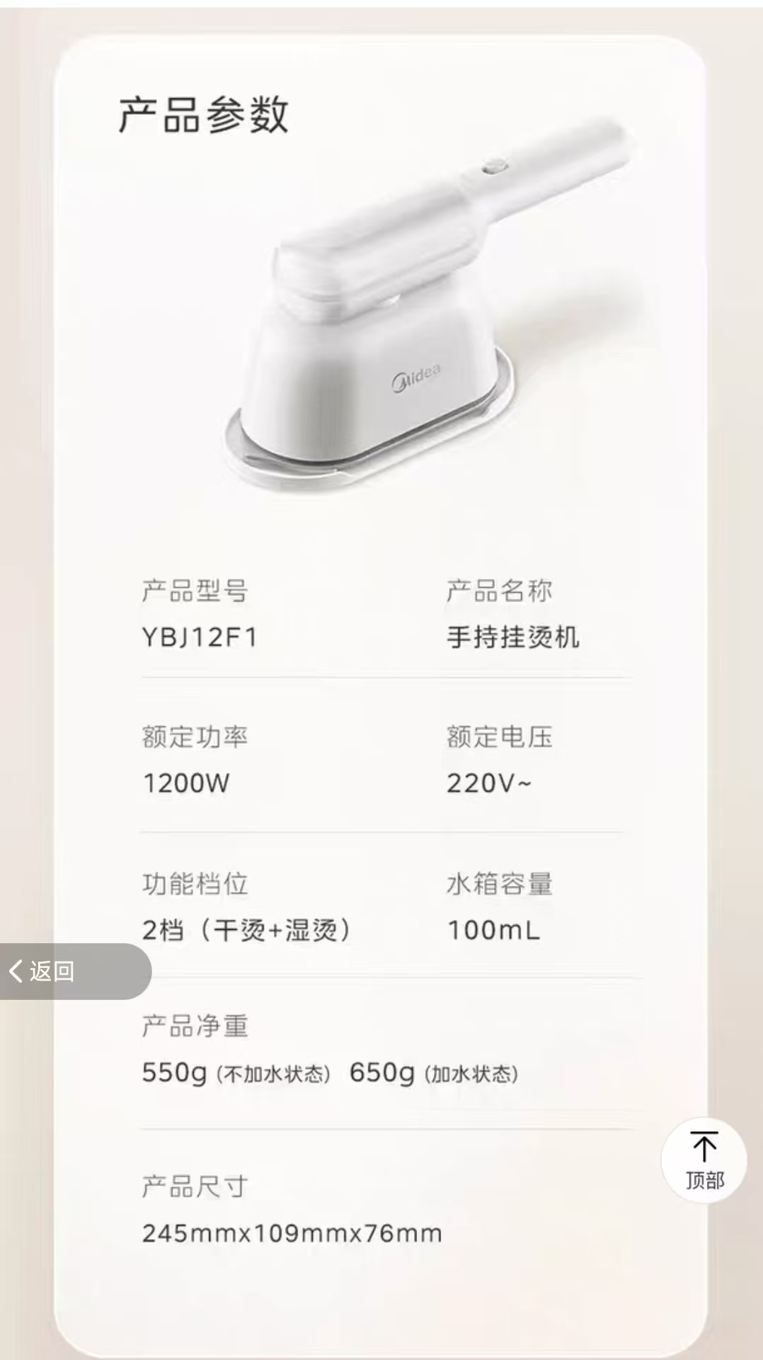 Главная страница > Ручной отпариватель Midea для домашнего использования, мини-утюг YBJ12JD для сухой глажки