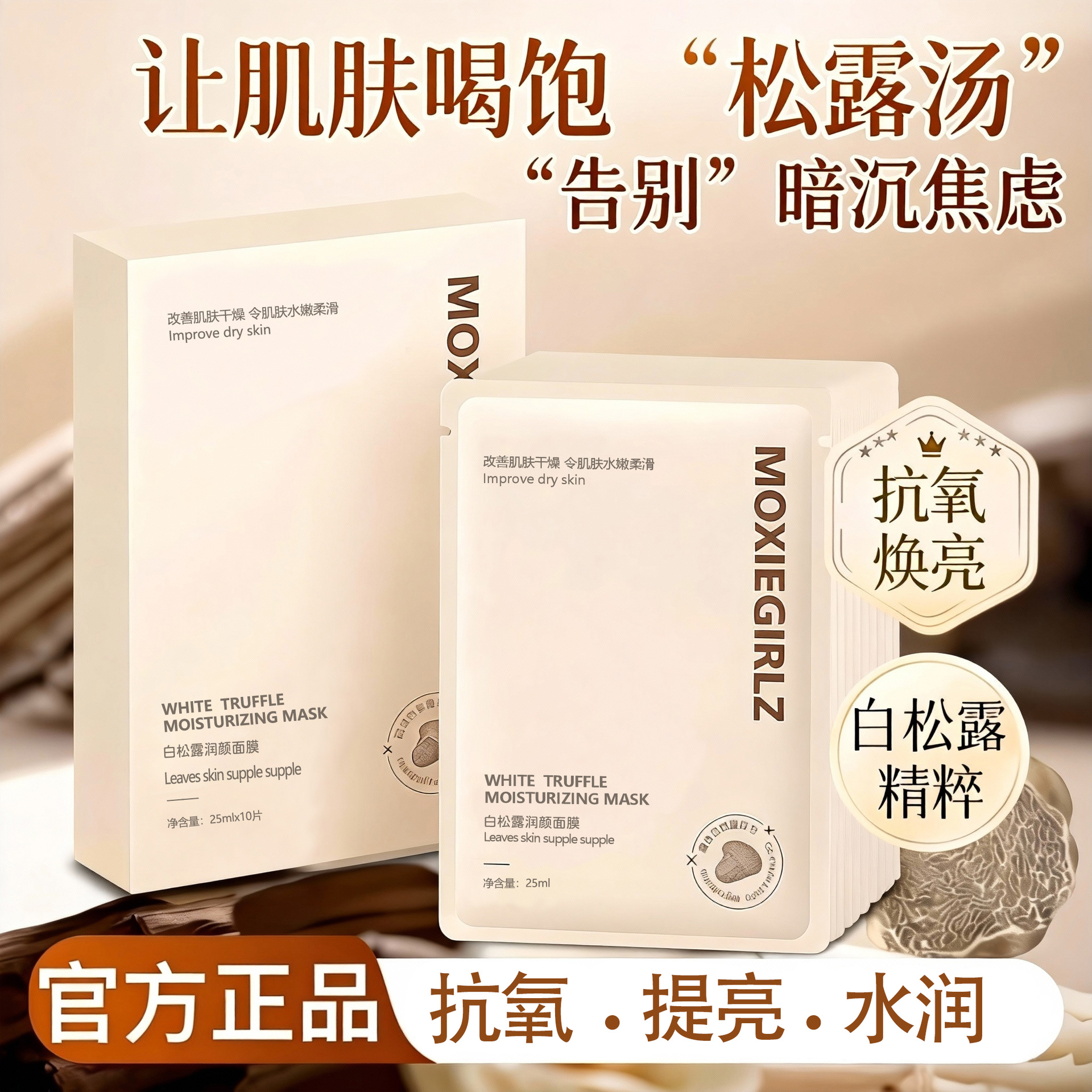 Белая трюфельная коллагеновая маска, увлажняющая, осветляющая, нежная, увлажняющая, укрепляющая и увлажняющая маска, успокаивающая и восстанавливающая маска.