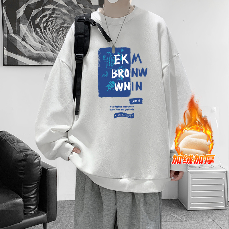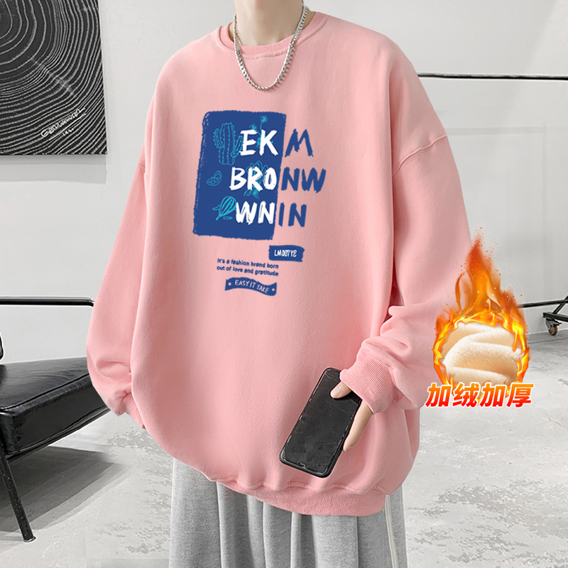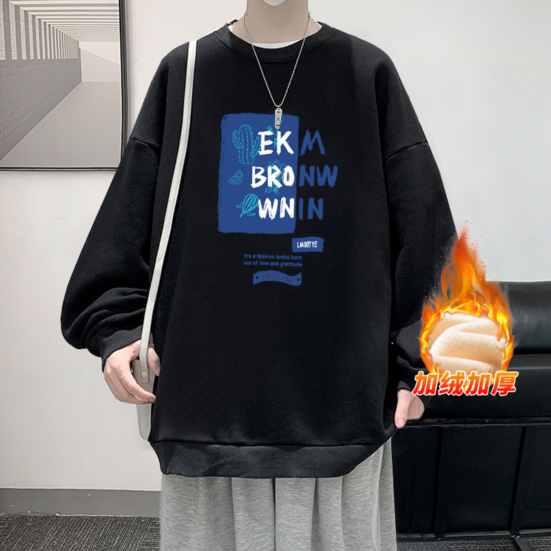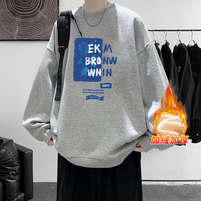 Главная страница > Свитер с круглым вырезом, мужской осенний модный брендовый Свободный топ с длинными рукавами и флисовой подкладкой, утепленный зимний топ для мужчин и женщин, одежда для пар