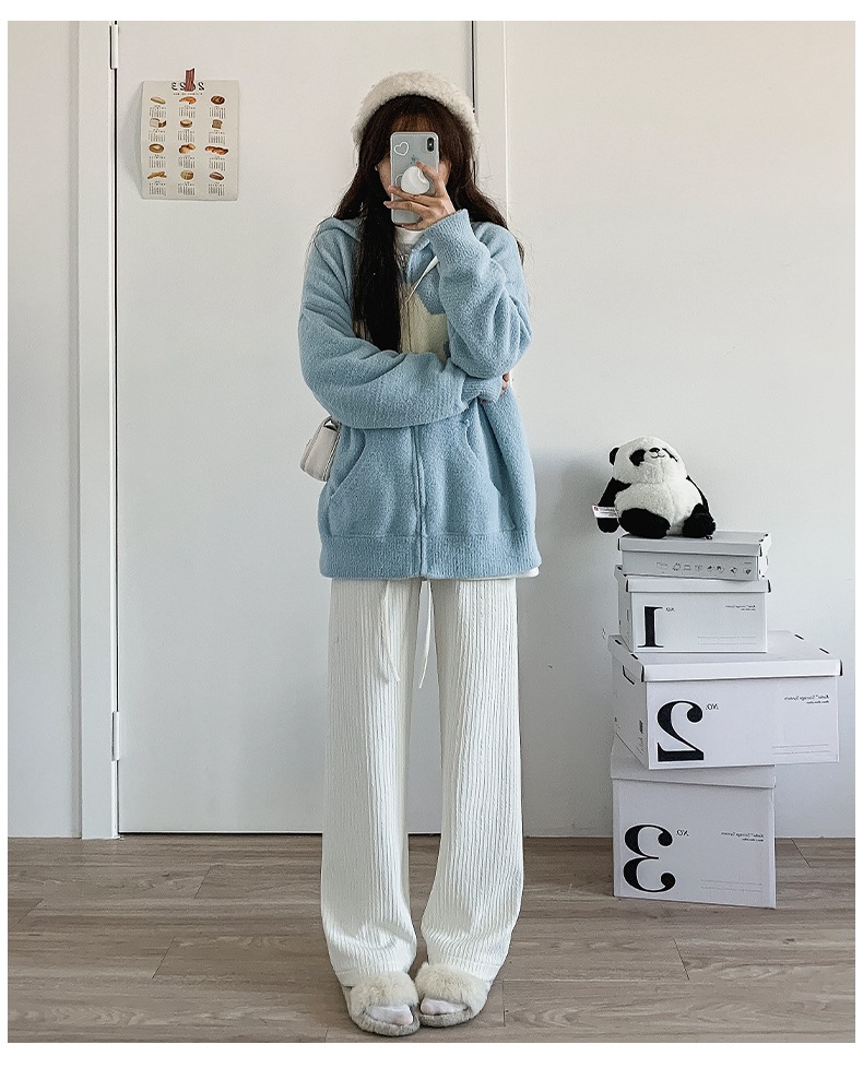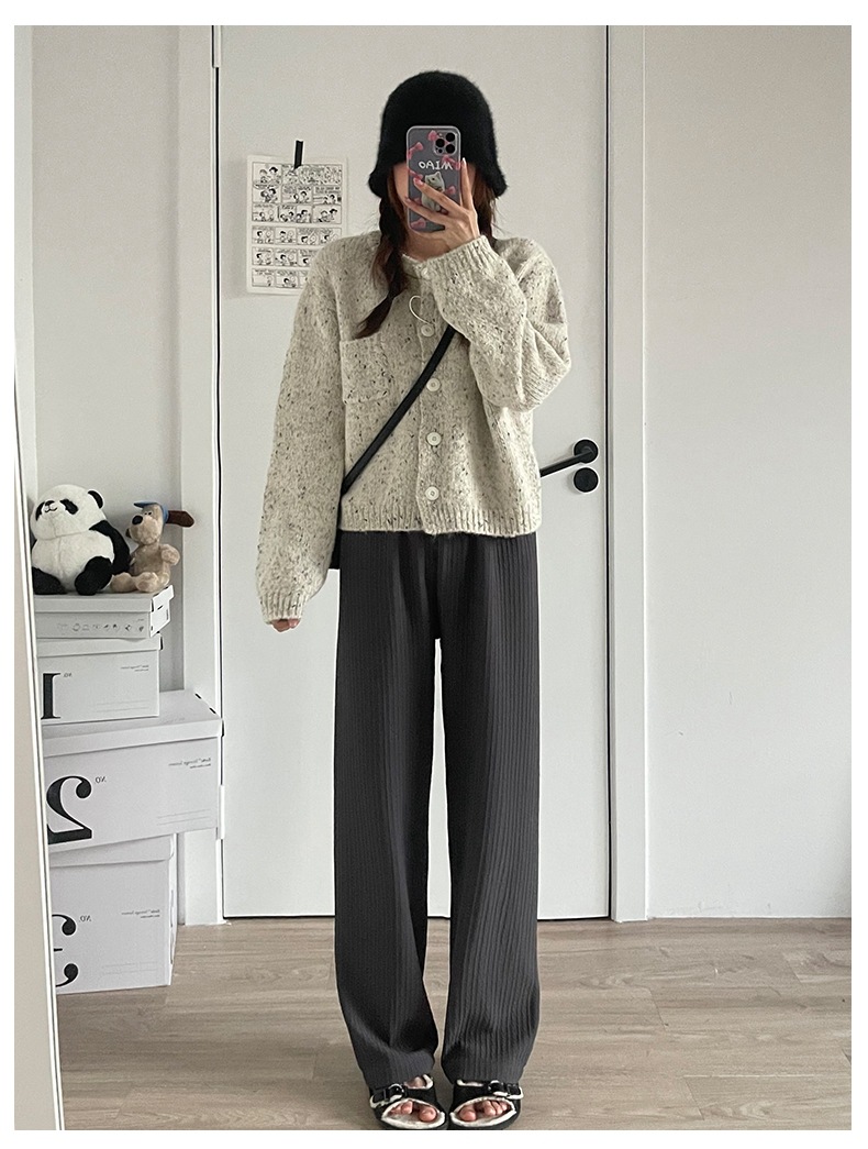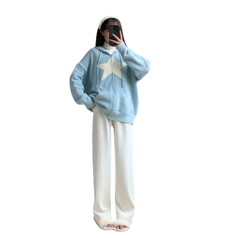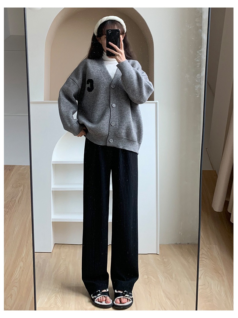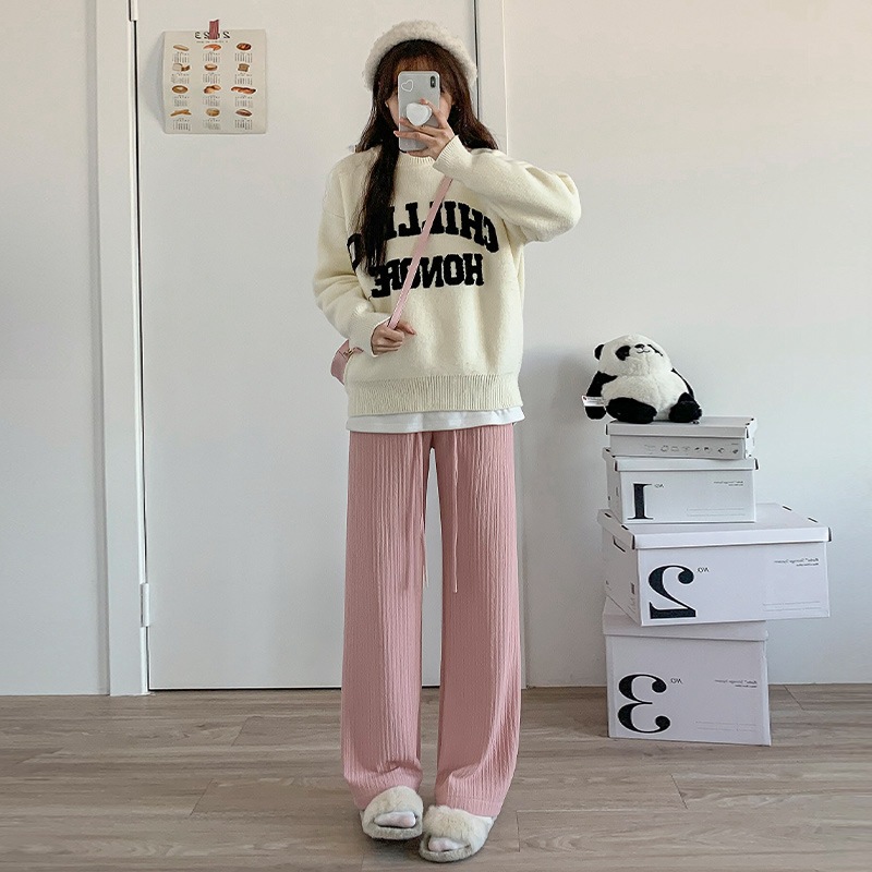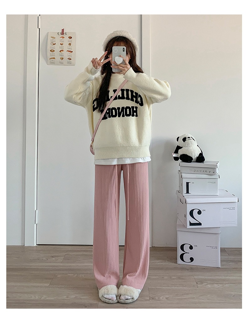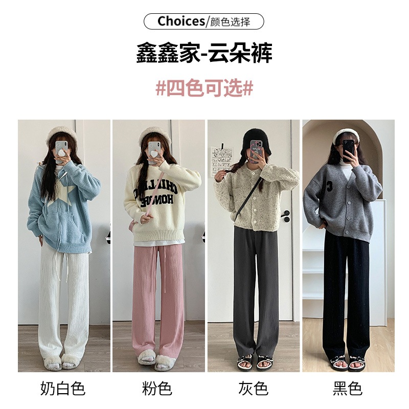 Главная страница > Белые вязаные широкие брюки с облаком, женские весенне-осенние брюки 2025 года с драпировкой в пол, прямые брюки с высокой талией и дисплеем, свободные повседневные брюки для женщин