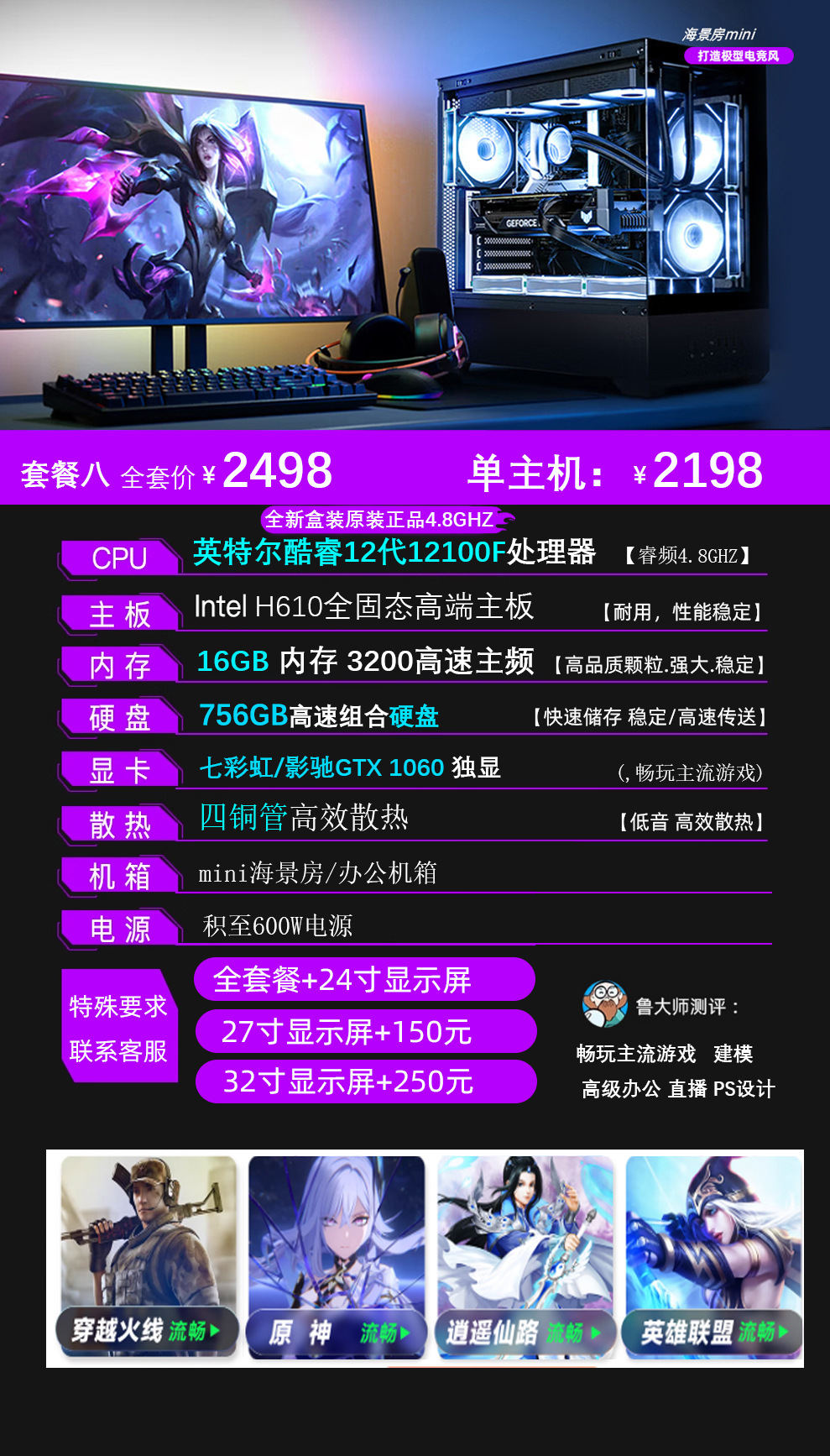 Набор из восьми одиночных хостов [12-е поколение/редактирование GTX1060/League of Legends/дизайн]