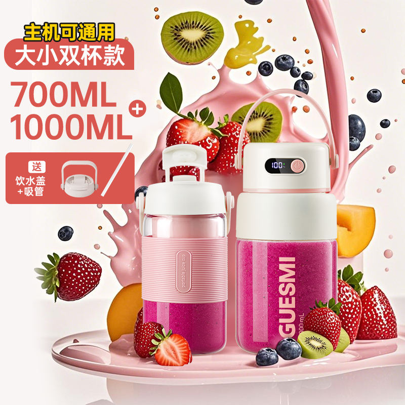 Порошок грейпфрута — лезвие 316/большие и маленькие двойные чашки [цифровой дисплей батареи + 700 мл + 1000 мл + 26-страничный стальной нож] поставляется с крышкой для прямого питья