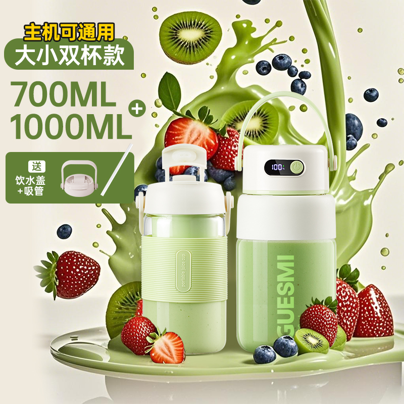 Лезвие Fresh Green-316/модель с большой и маленькой двойной чашкой [цифровой дисплей батареи + 700 мл + 1000 мл + 26-страничный стальной нож] бесплатная крышка для прямого питья