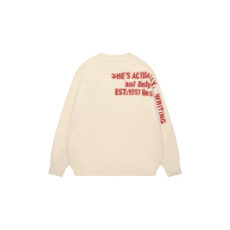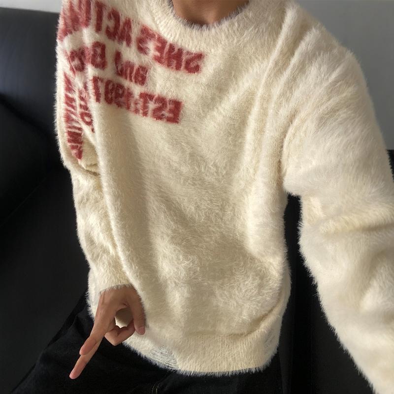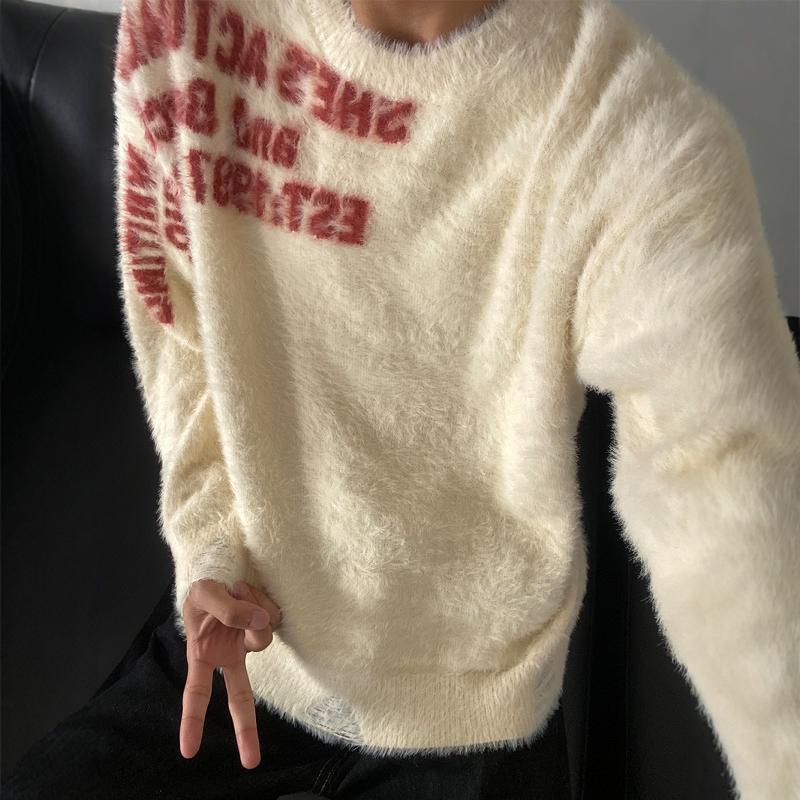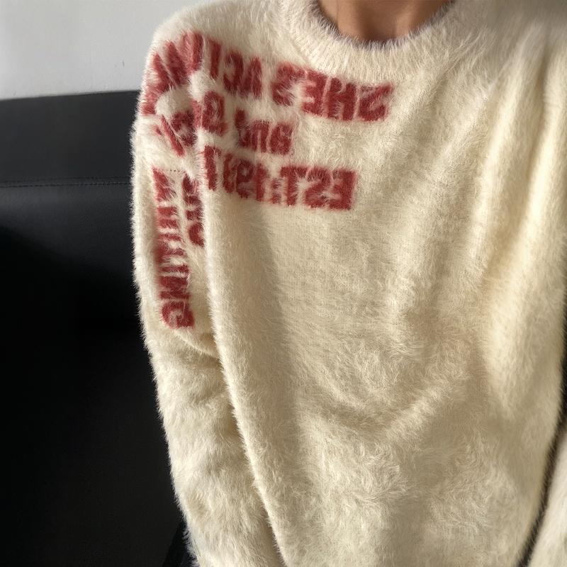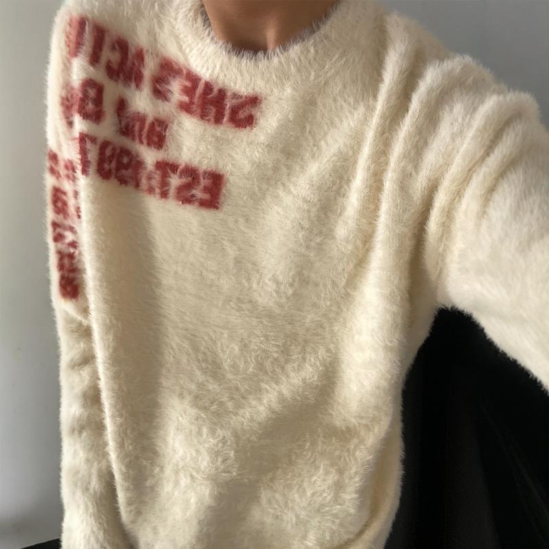 Главная страница > Американский прилив имитация куницы щетиной мягкий восковой осенний зимний свитер мужской ретро креативный жаккардовый алфавит свободная пара вязаный свитер