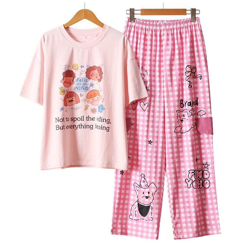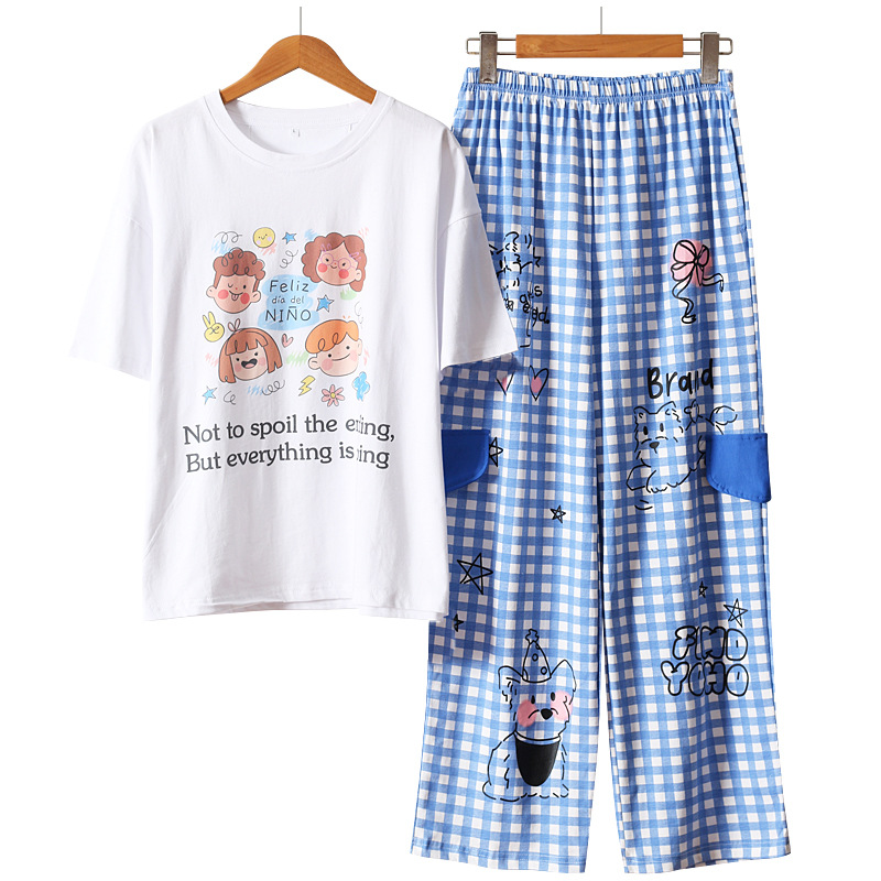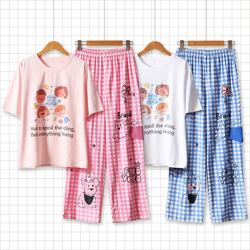 Главная страница > Интернет-красный японский сладкий мультфильм весенняя и летняя пижама женские короткие рукава брюки в клетку свободного повседневного домашнего костюма
