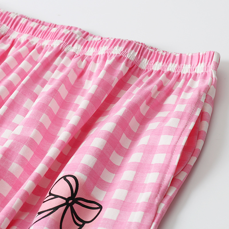 Интернет-красный японский сладкий мультфильм весенняя и летняя пижама женские короткие рукава брюки в клетку свободного повседневного домашнего костюма