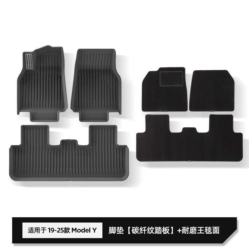 19-25 Новые коврики для Model Y с двухслойным литьем под давлением (износостойкие "Король") (для левостороннего управления/оригинальная металлическая углеродная волоконная удлинённая версия) W250006967