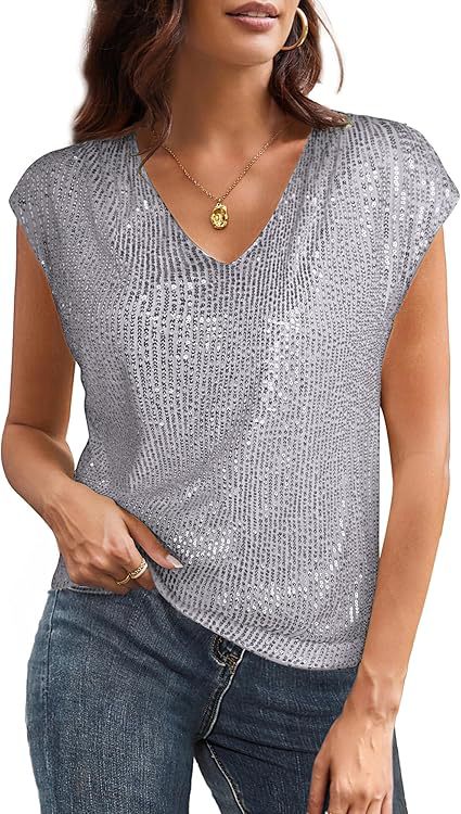 Женская блестящая майка-топ с V-образным вырезом и короткими рукавами, украшенная пайетками, для вечеринок, от Amazon 2026, для европейского и американского рынков, для трансграничной торговли, для независимых платформ.