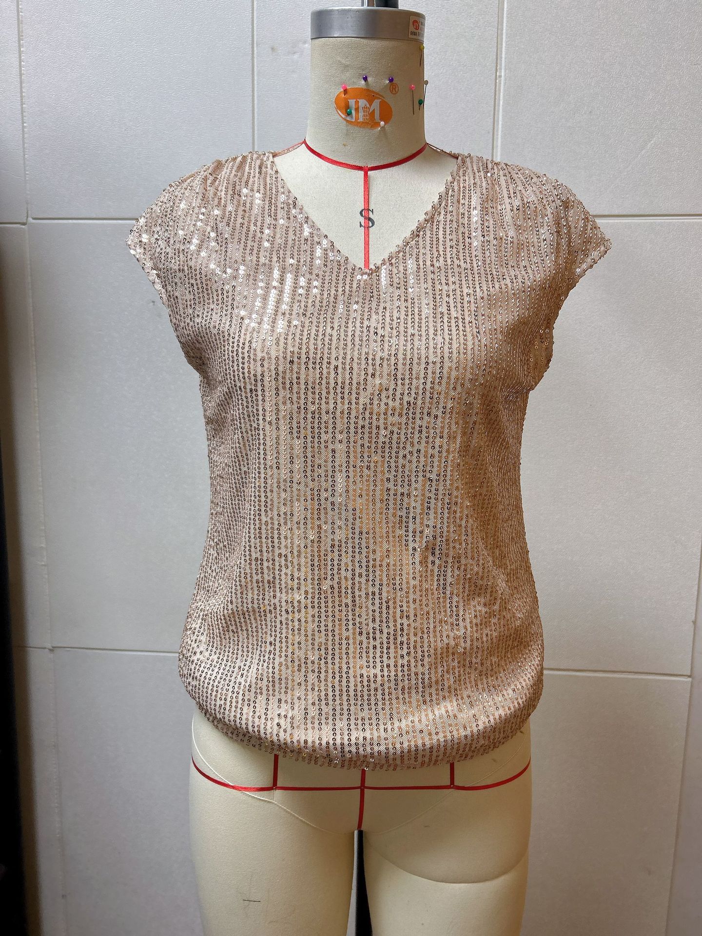 Главная страница > Женская блестящая майка-топ с V-образным вырезом и короткими рукавами, украшенная пайетками, для вечеринок, от Amazon 2026, для европейского и американского рынков, для трансграничной торговли, для независимых платформ.