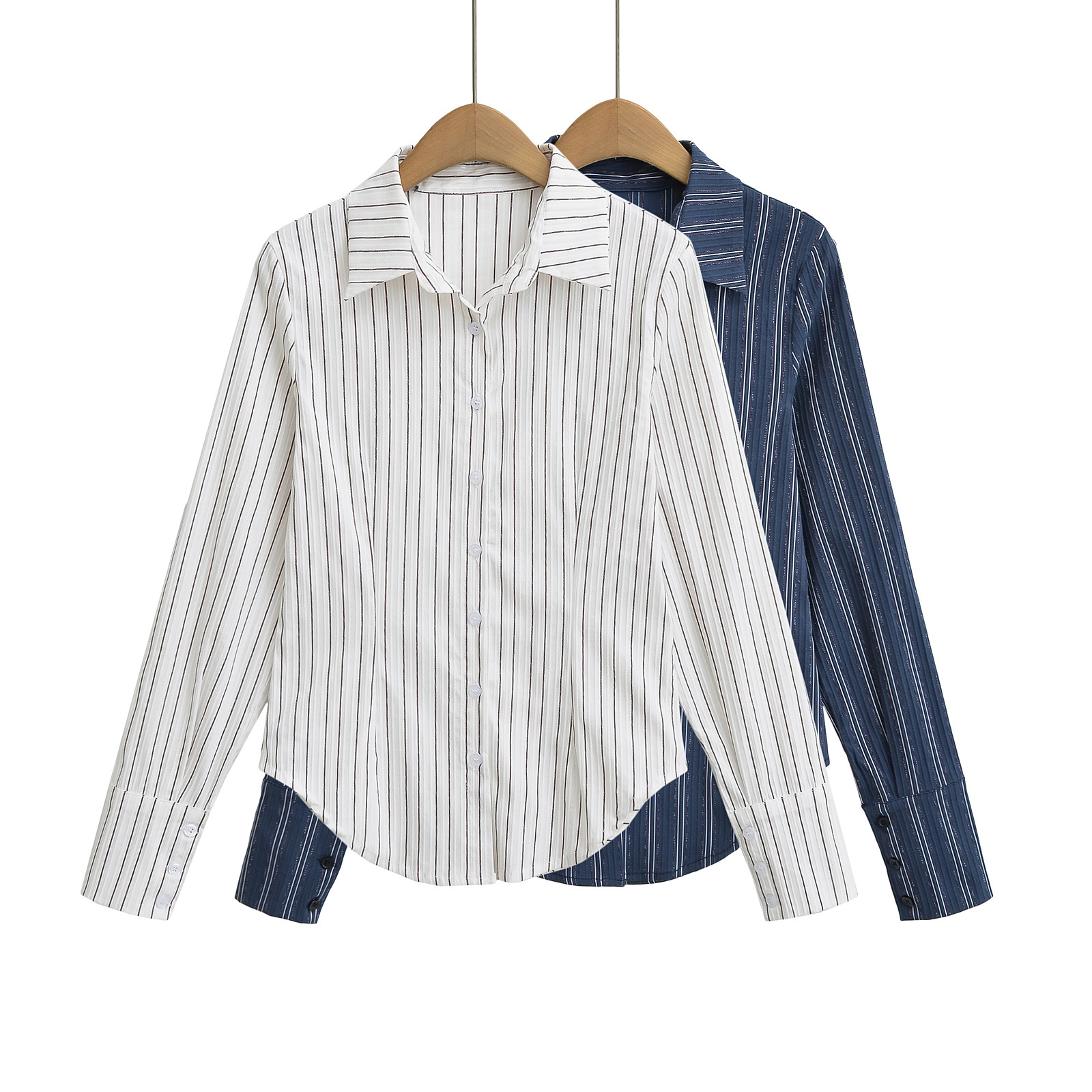 Главная страница > Американский продвинутый смысл в полоску с длинными рукавами рубашка женская весна 2025 новый минус возраст