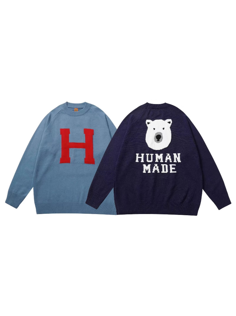 Главная страница > Японский вязаный свитер с рисунком белого медведя в стиле ретро, модная куртка унисекс с длинными рукавами и надписью