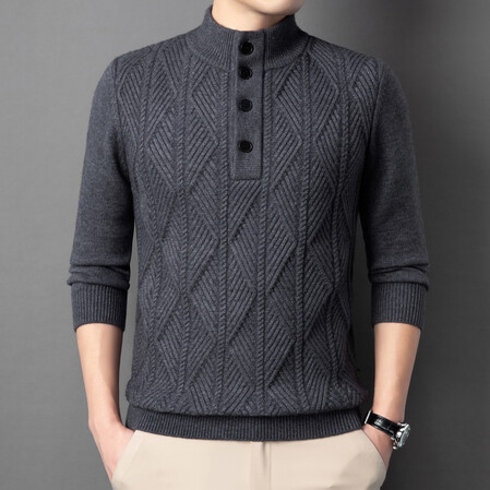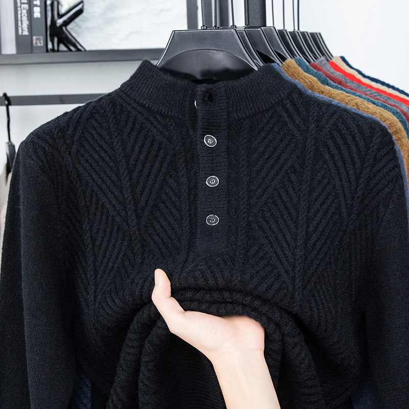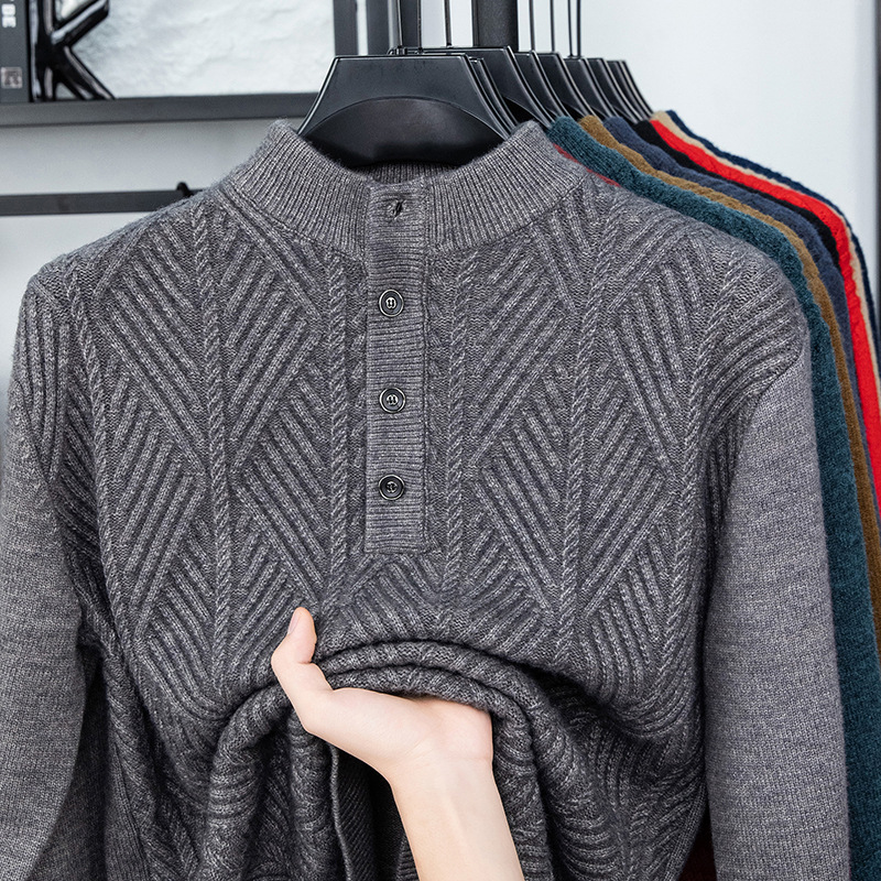 Главная страница > Новый зимний мужской свитер с полувысоким воротником от производителя, утепленная теплая жаккардовая вязаная базовая рубашка