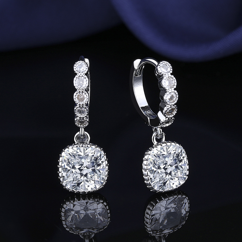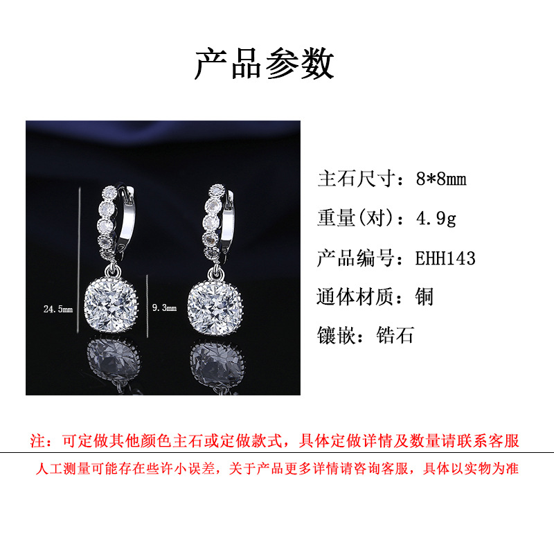 Европейские и американские модные серьги с цирконием, универсальные квадратные серьги с пряжкой и кисточками, бриллиантовые циркониевые, модные женские элегантные волнистые