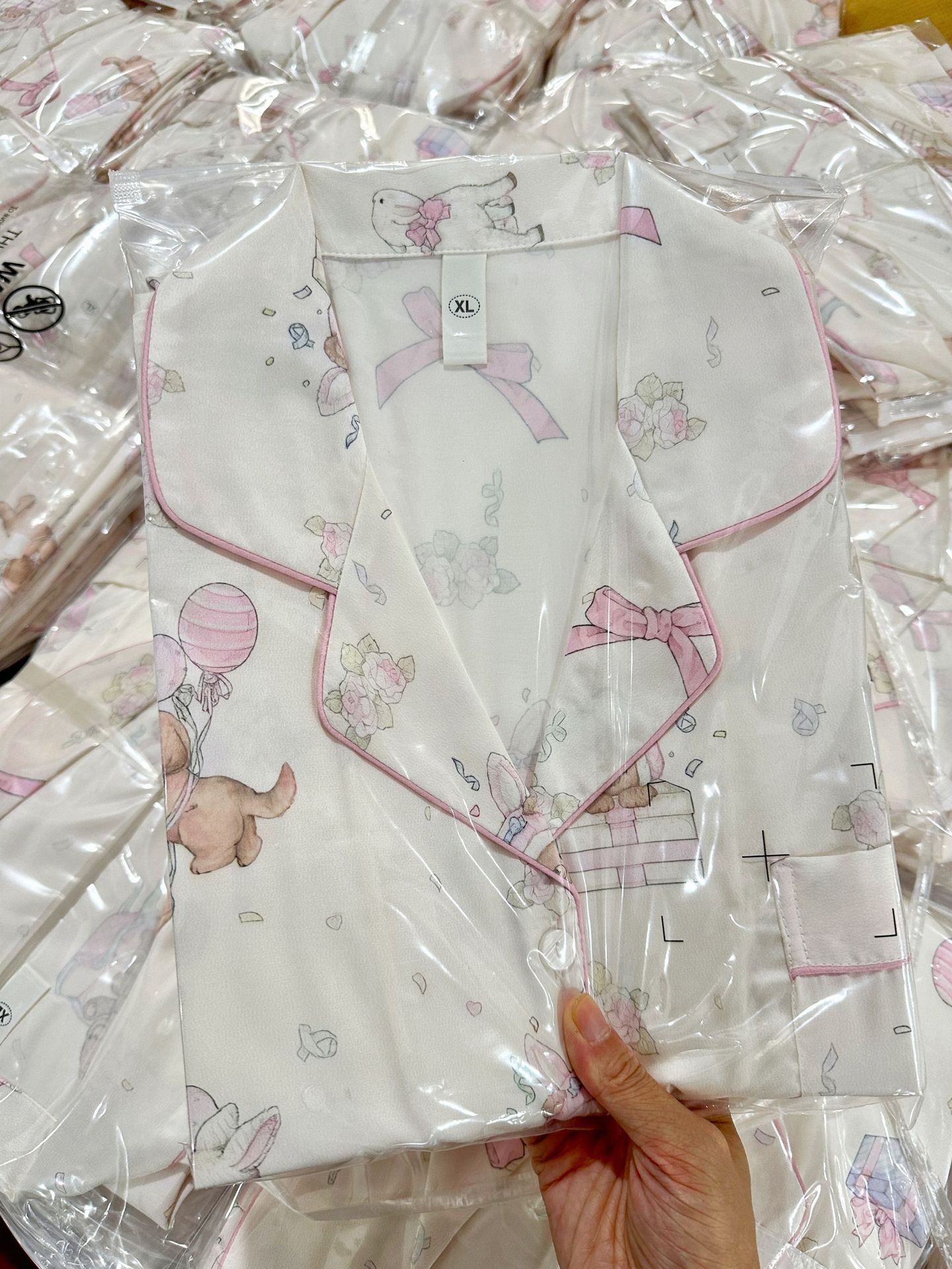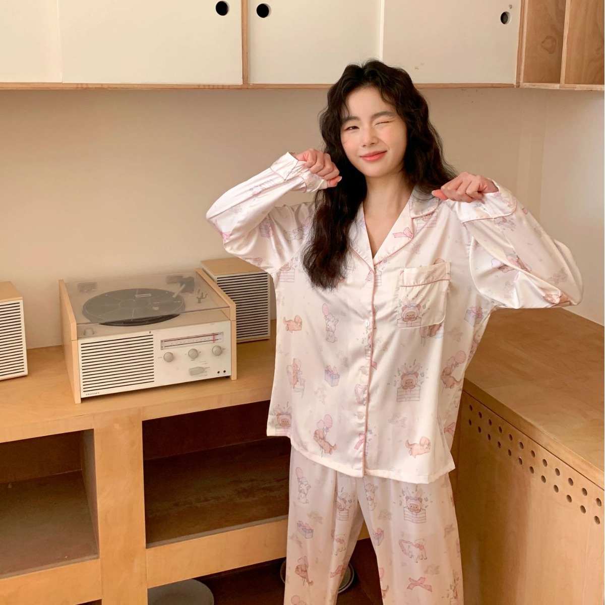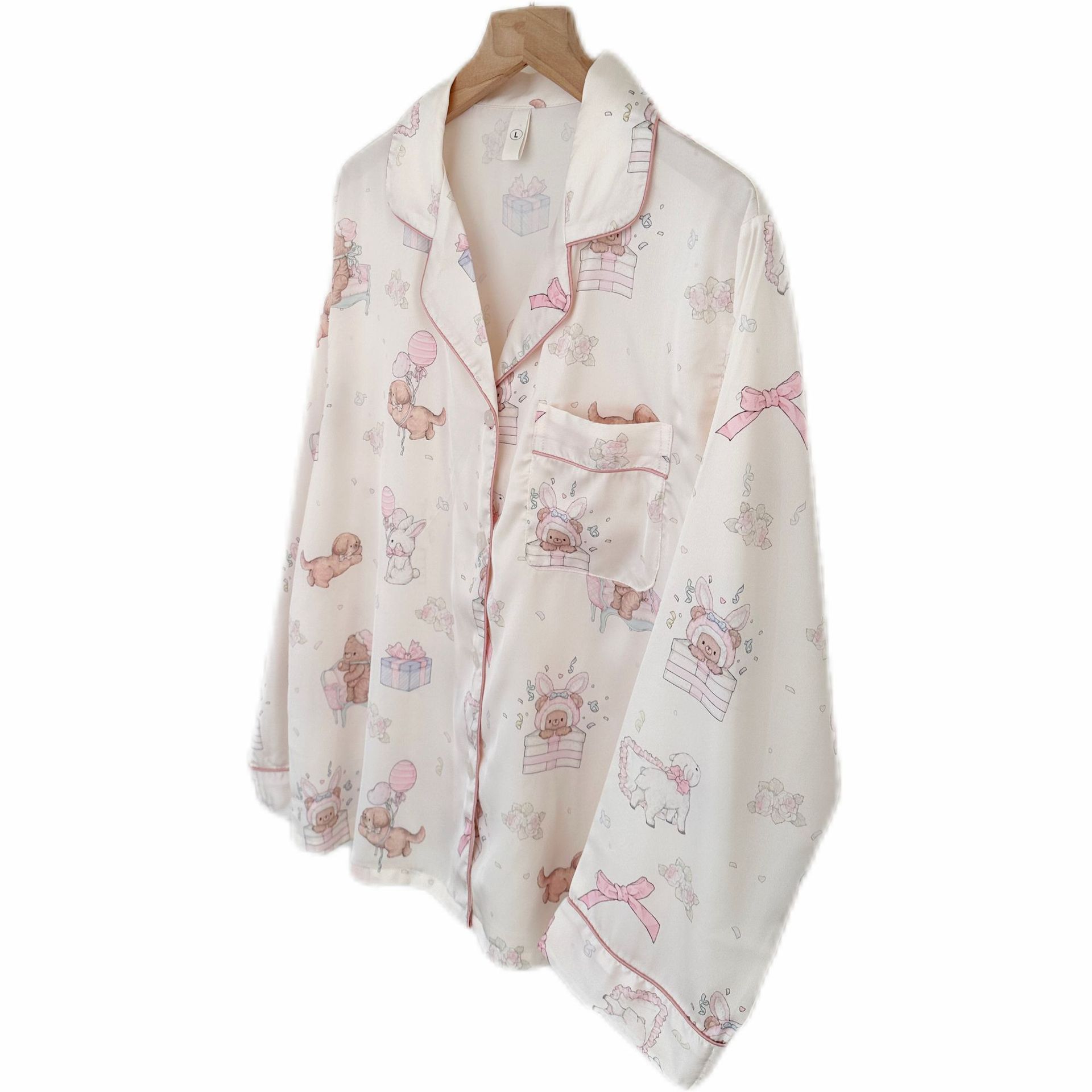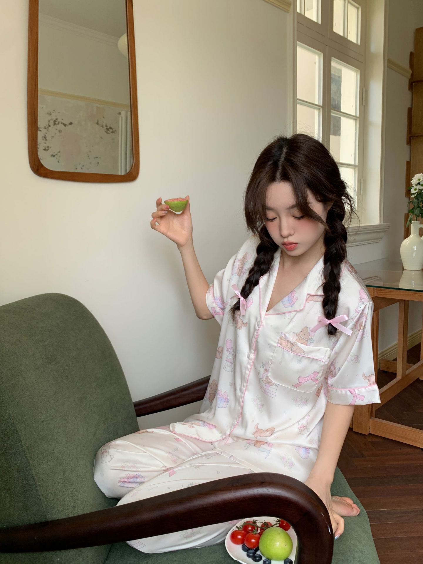 Главная страница > Розовый Медведь пижамы для девочек в Корейском стиле сладкий искусственный шелк Весна Новая Домашняя одежда лацкан Тонкий