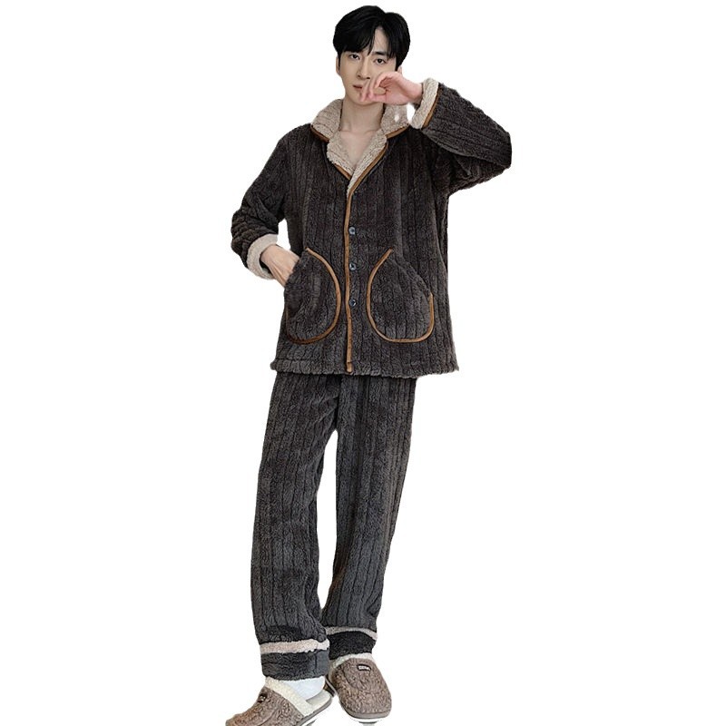 Главная страница > Фланелевой мужской пижамный комплект, осенне-зимний новый теплый коралловый бархатный кардиган, комплект домашней одежды